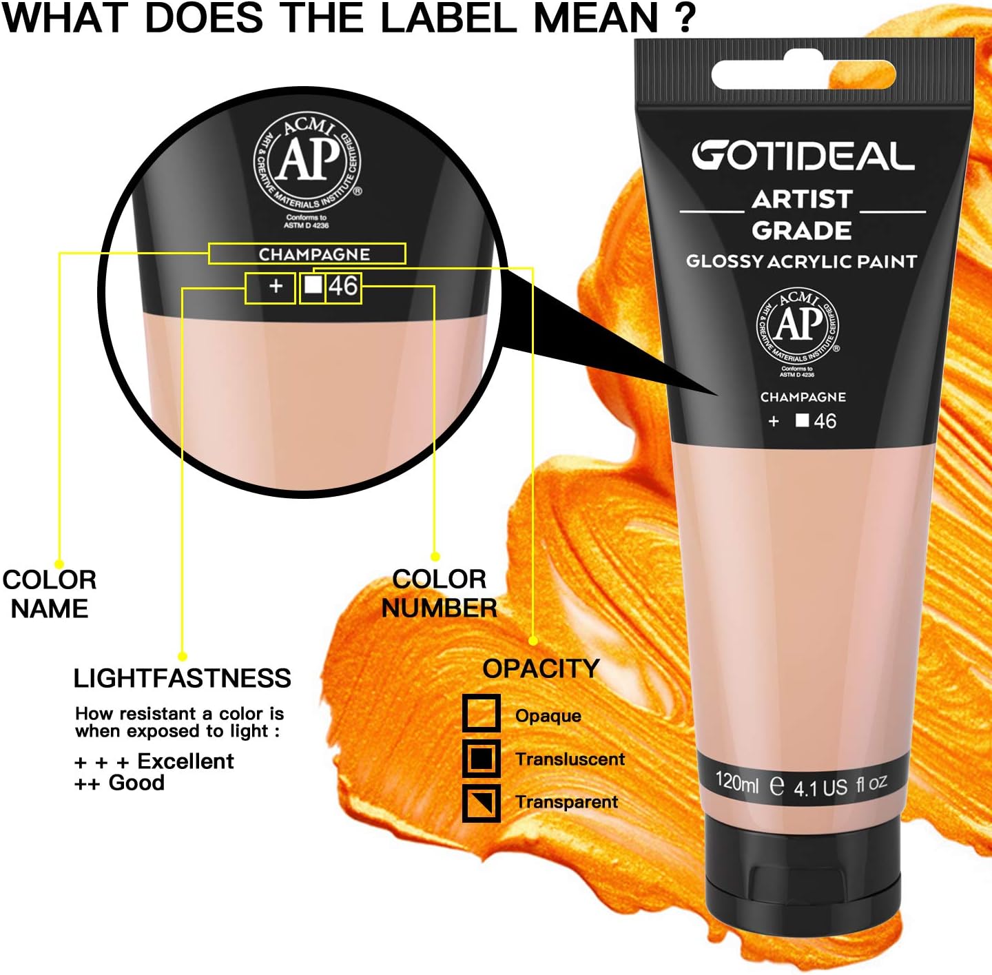 GOTIDEAL Acrylic Paint Champagne Flesh Tubes(120ml, 4.1 oz) Non Toxic Non Fading,Rich Pigments for Painters, Adults & Kids, Ideal for Canvas Wood Clay Fabric Ceramic Craft Supplies (Champagne)