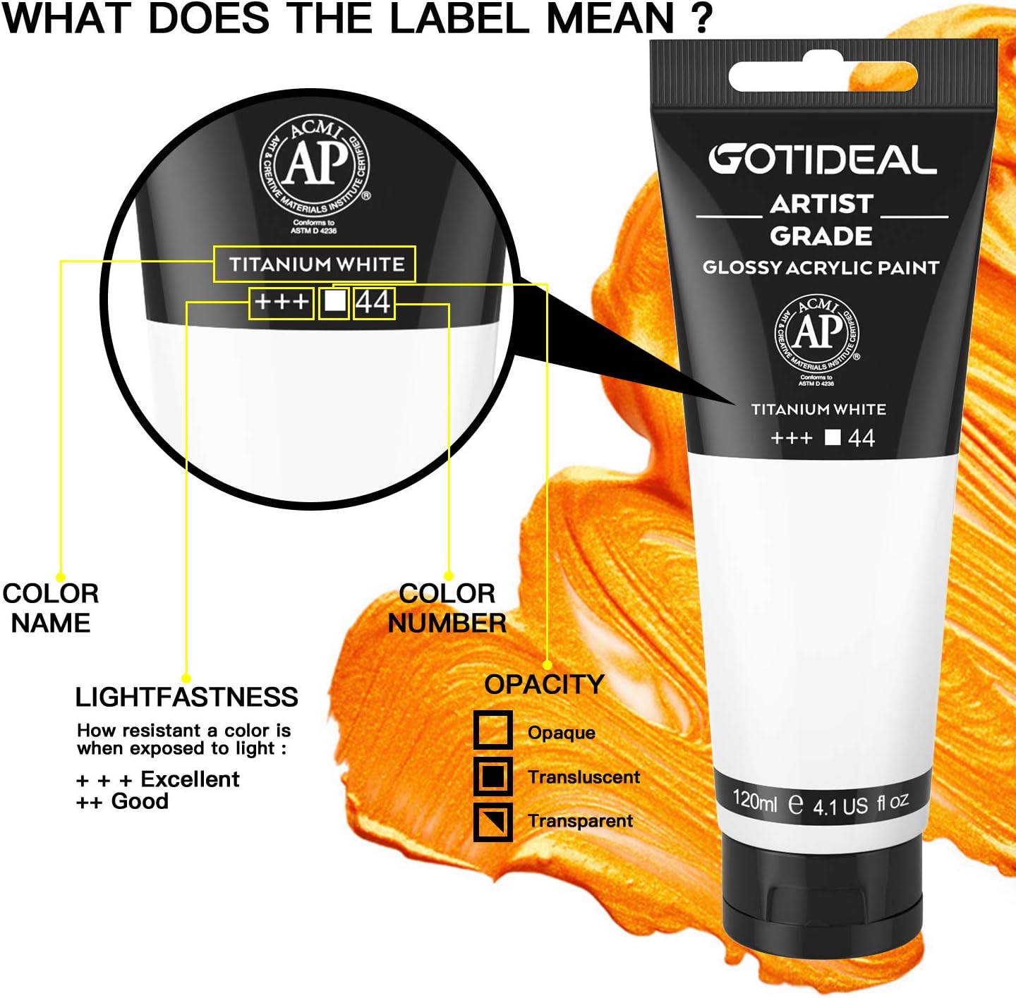 GOTIDEAL Acrylic Paint Titanium White Tubes(120ml, 4.1 oz) Non Toxic Non Fading,Rich Pigments for Painters, Adults & Kids, Ideal for Canvas Wood Clay Fabric Ceramic Craft Supplies (Titanium White)