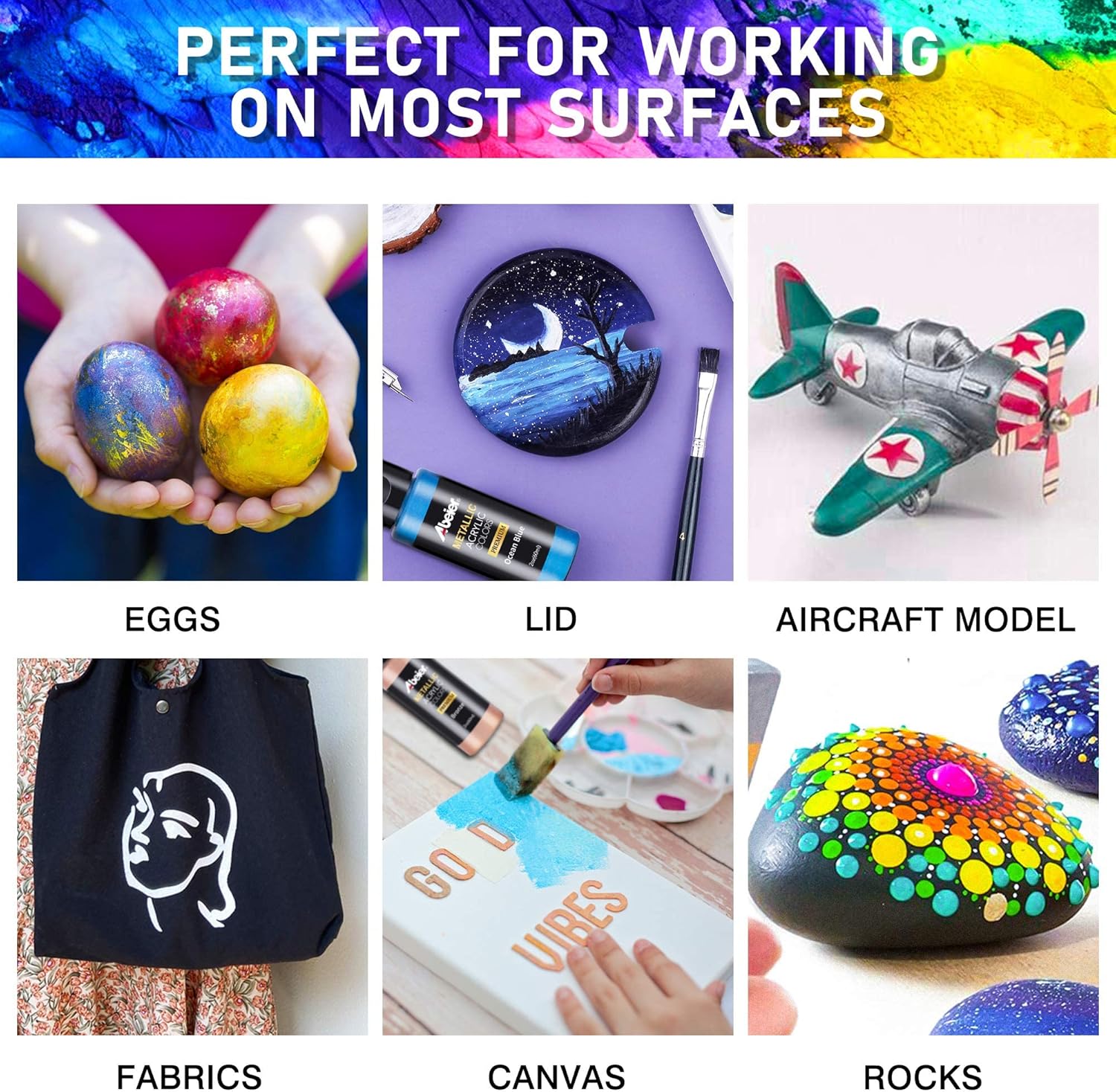 - Versatile Purposes: These acrylic paints dry quickly and stay on surfaces extremely well, permanent, waterproof, and fade-proof, can be used indoors or outdoors, on walls, paper, glass, rocks, or other materials, suitable for everyone, from amateur to advanced to professional.