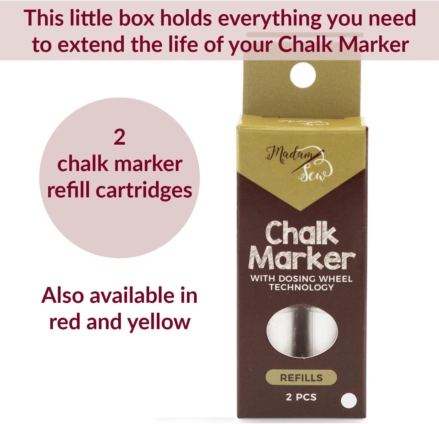 Madam Sew Fabric Chalk Markers for Sewing & Quilting | Refillable Tailors Chalk for Fabric Marking with Dosing Wheel | Ideal for Marking on Cotton, Knit, Suede (White)