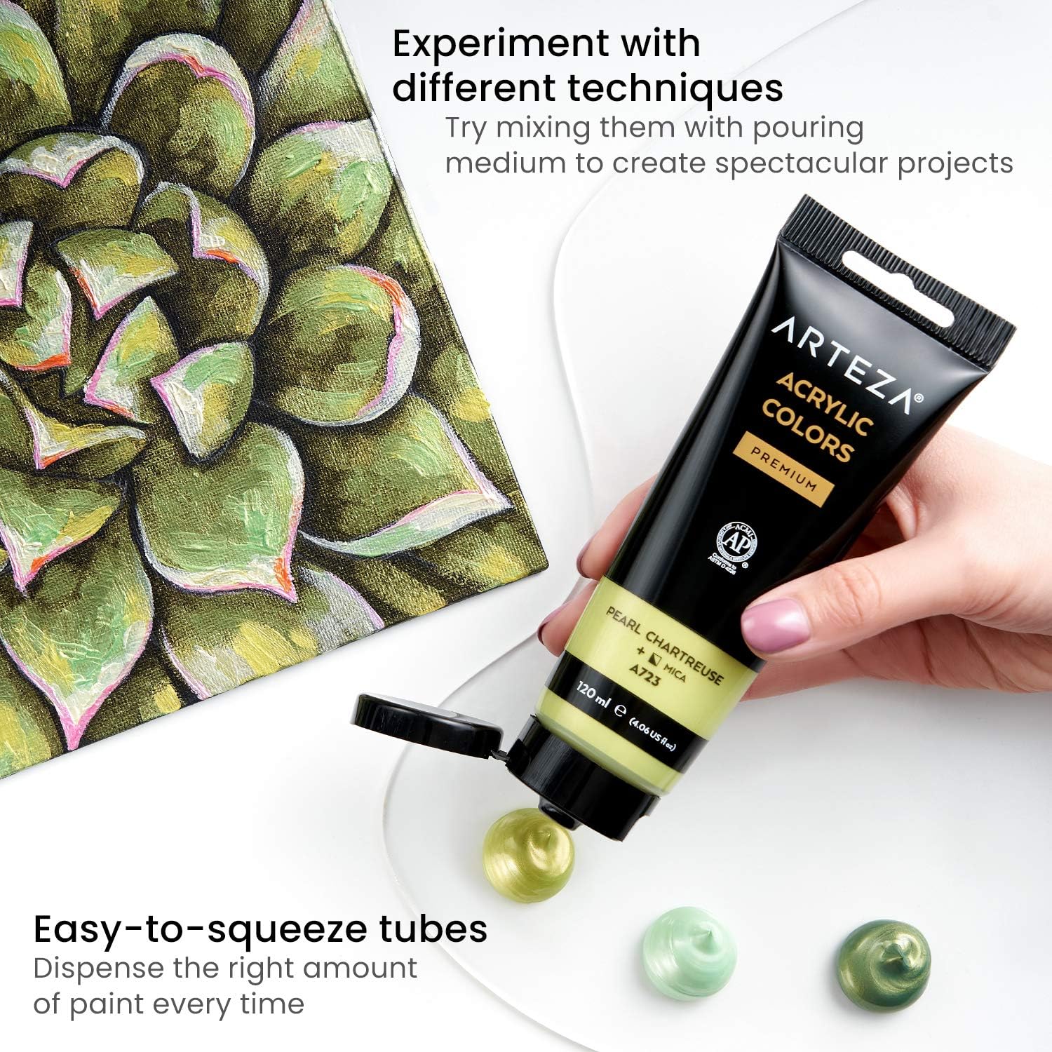- Easy-To-Squeeze Tubes: Get just the right amount of quick-drying paint onto your palette without dispensing more than you need.