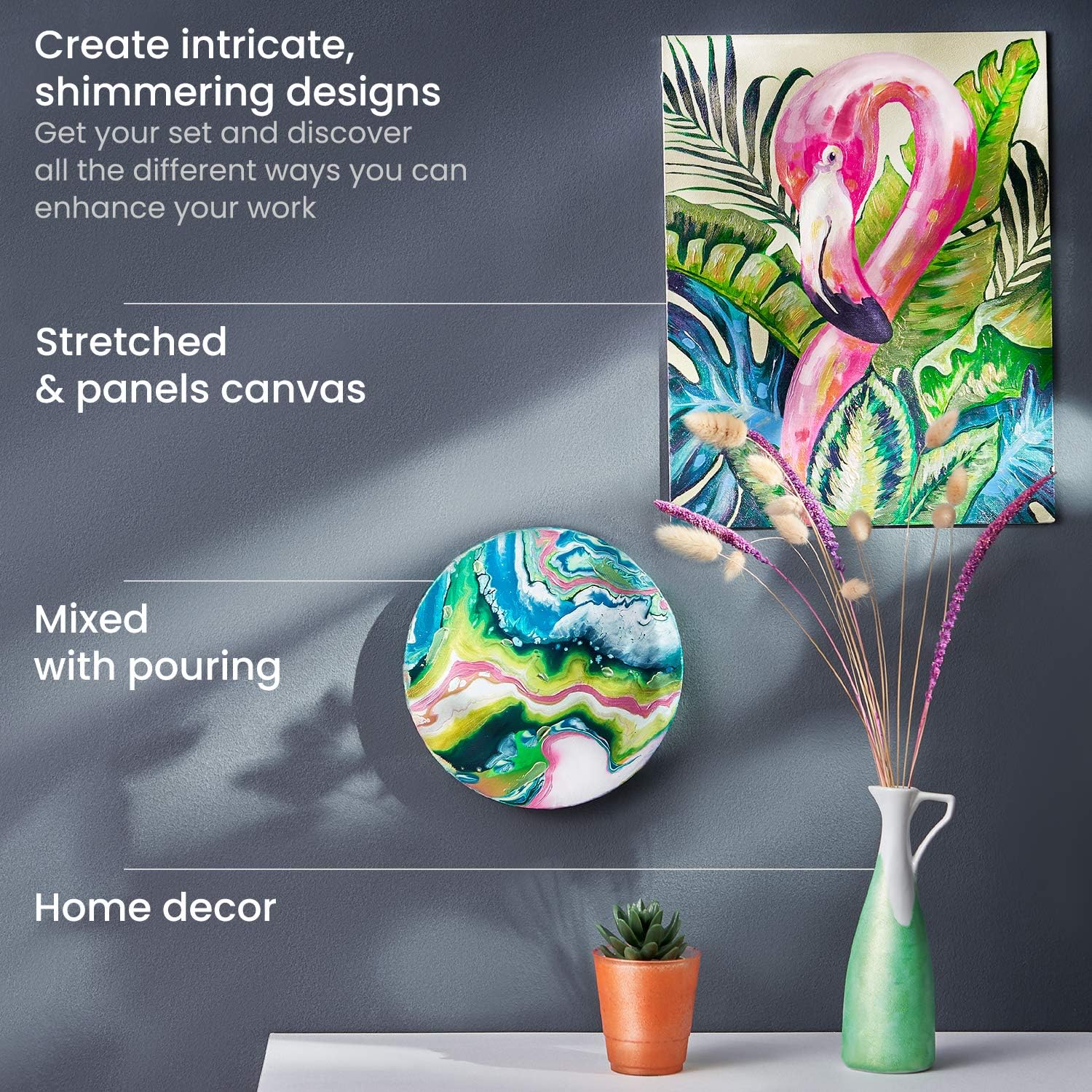 - Surface Recommendation : Paint on a wide range of smooth surfaces, including canvas, wood, rocks, glass, and ceramics