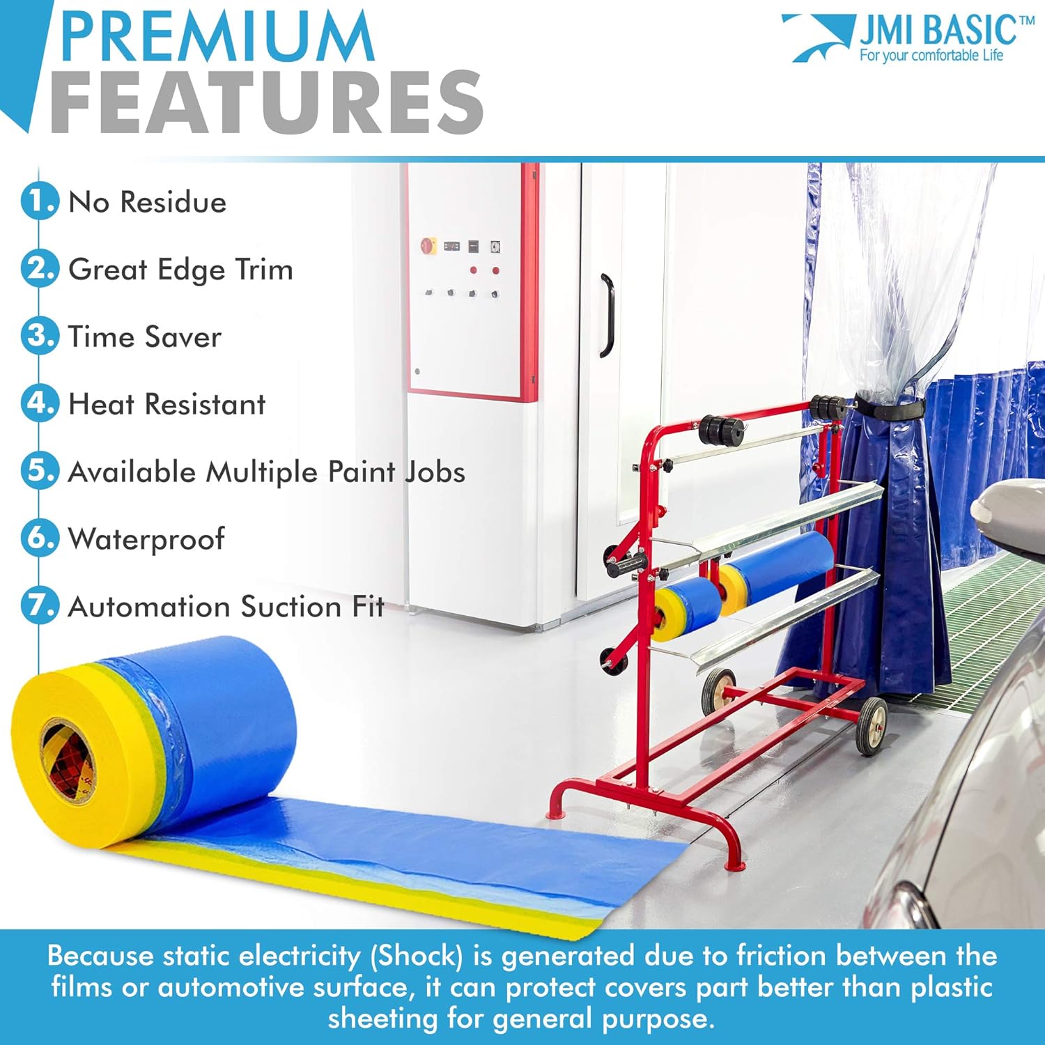 - Optimized for automotive paint: Plastic sheeting with yellow tape protects vehicle parts and auto body paint surfaces from overspray and bleed-throughs from auto paint, spray paint. Provides automation suction fit due to static electricity produced by friction.