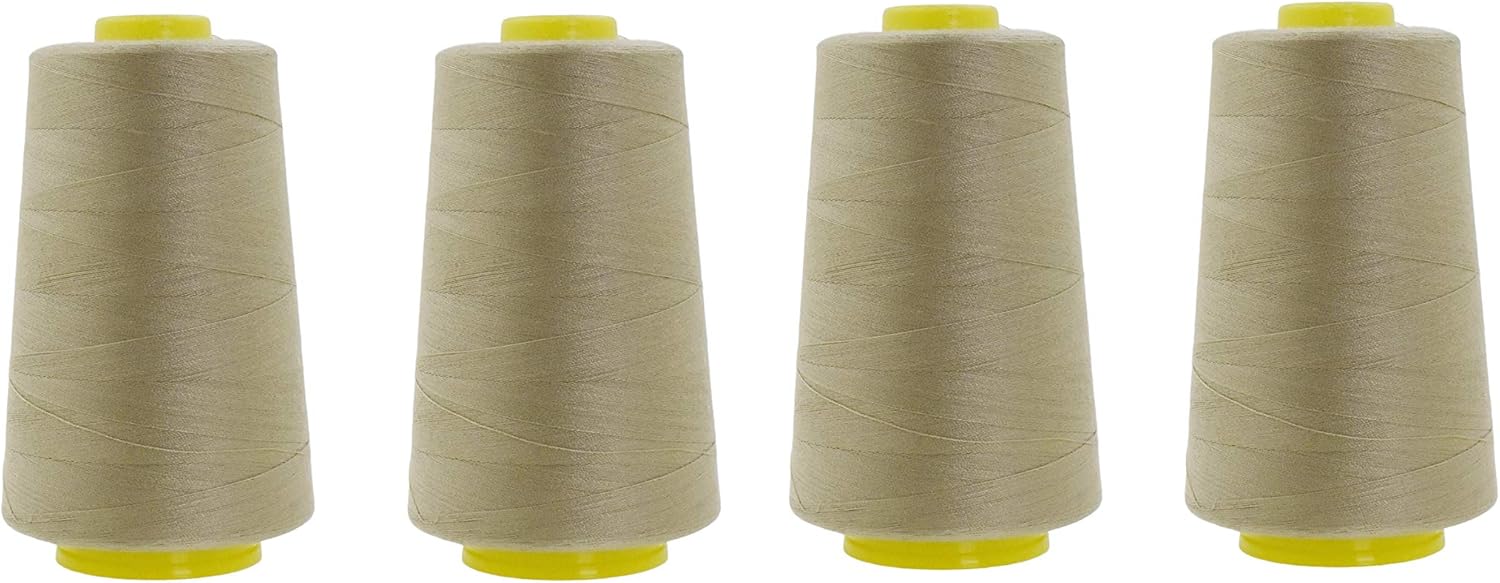 Mandala Crafts 4 Pack of Serger Threads Cones Spools - 20S/2 24000 Yards Polyester Beige Threads for Sergers Machine and Overlock Quilting Sewing Machine