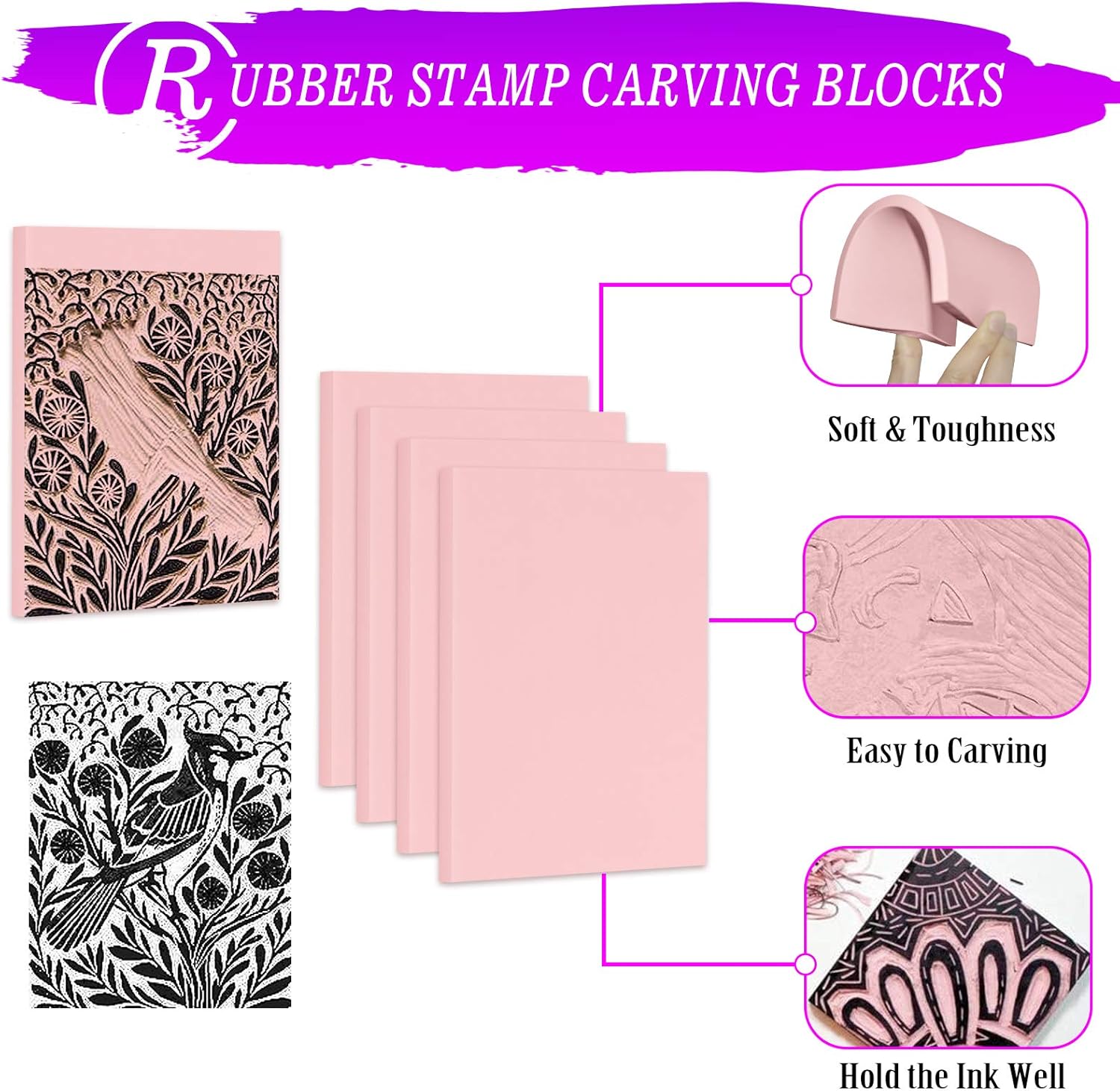 - Premium Soft Rubber Block- Speedy Carve Block: Comes with1 pink rubber carving block,4x6" in size and 1/4" thick. Easier to carve than linoleum blocks. This engraving rubber block is made of high-quality rubber material, which is soft and safe, ideal for professional or beginners to engrave