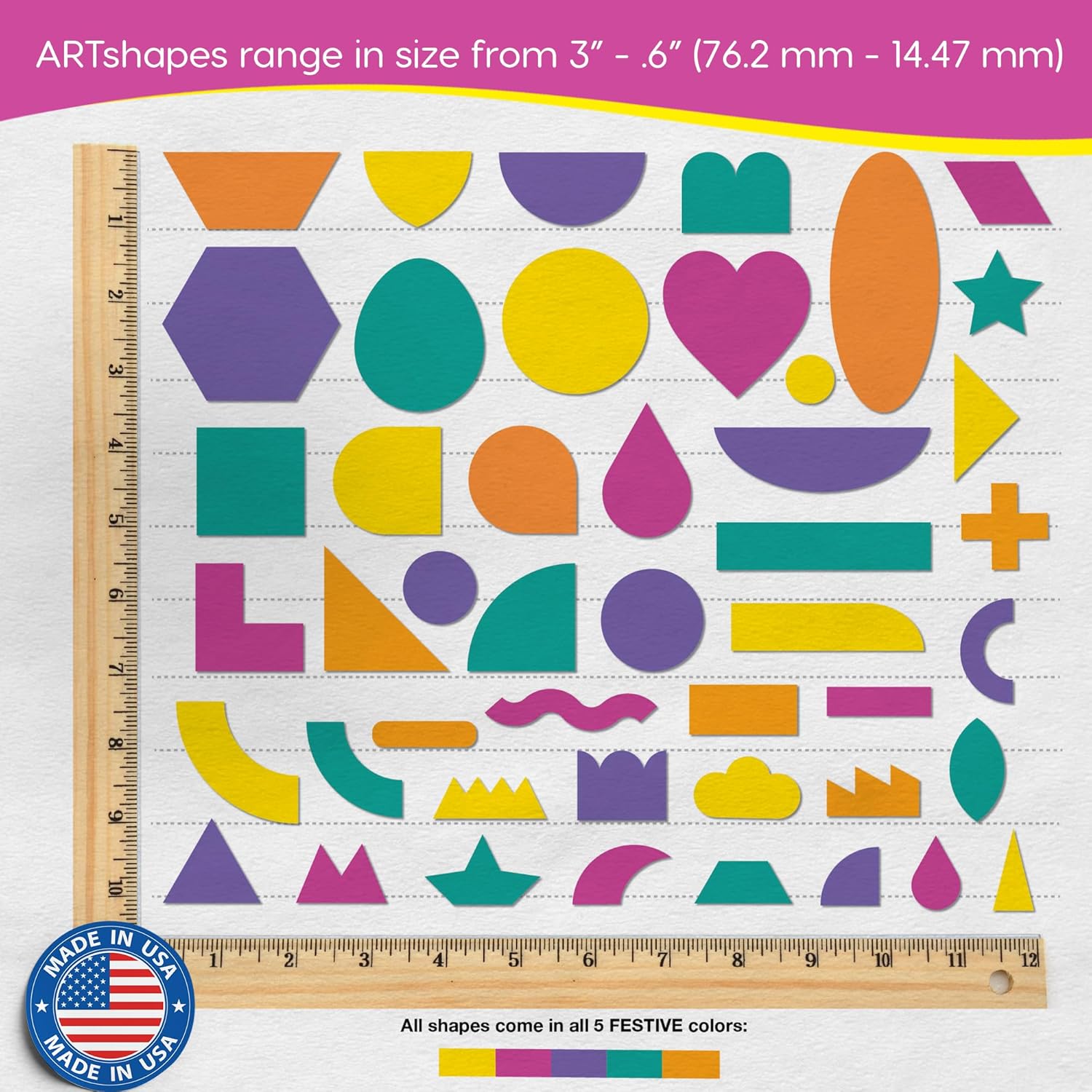 - SO MANY SHAPES AND IDEAS: Get 840 easy punch-out shapes in 5 festive colors—blue, yellow, pink, orange, and teal colored card stock. Pack includes an assortment of 45 different fun and funky shapes that can be used to create endless art and math projects. NEED IDEAS? Get started with 70+ ideas in the full-color idea guide (included).