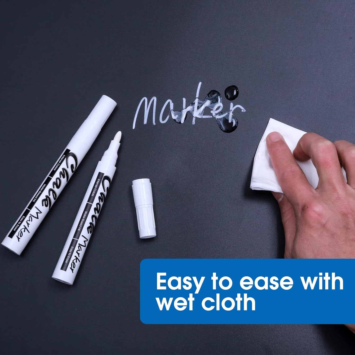 - EASY TO CLEAN - These non-toxic, water-based liquid chalk markers can be erased easily by wiping the area with a damp cloth or paper towel making all paint to disappear without smudging or streaking. Also improved cap will save the tip from getting damaged.