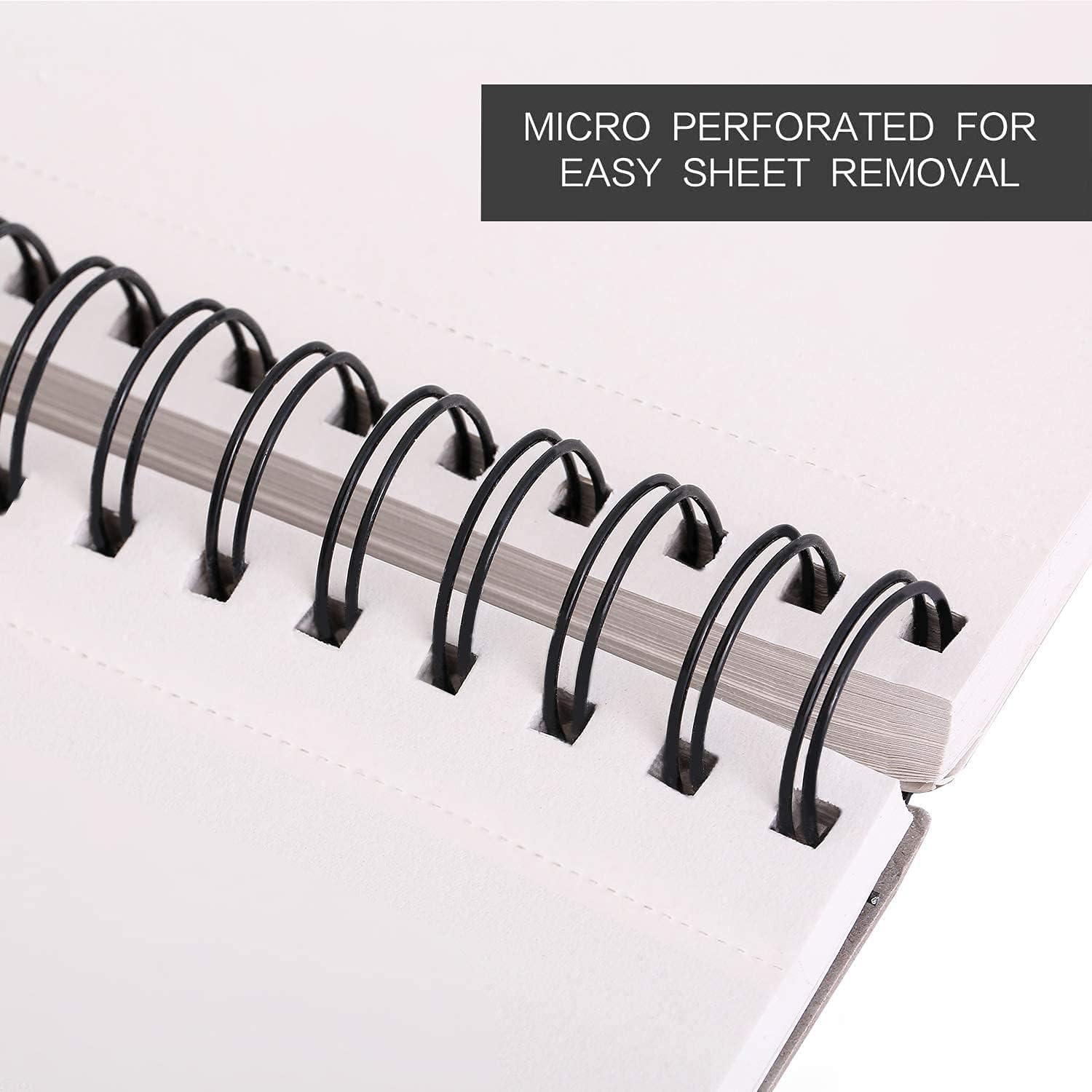 - WONDERFUL DESIGN FEATURES - Top spiral make our sketchpad friendly for both left-handed and right-handed, paper inside the sketchbook is very beautiful & smooth while drawing. Pages are easily torn from the notebook with punctures. Perfect use for adults & kids.
