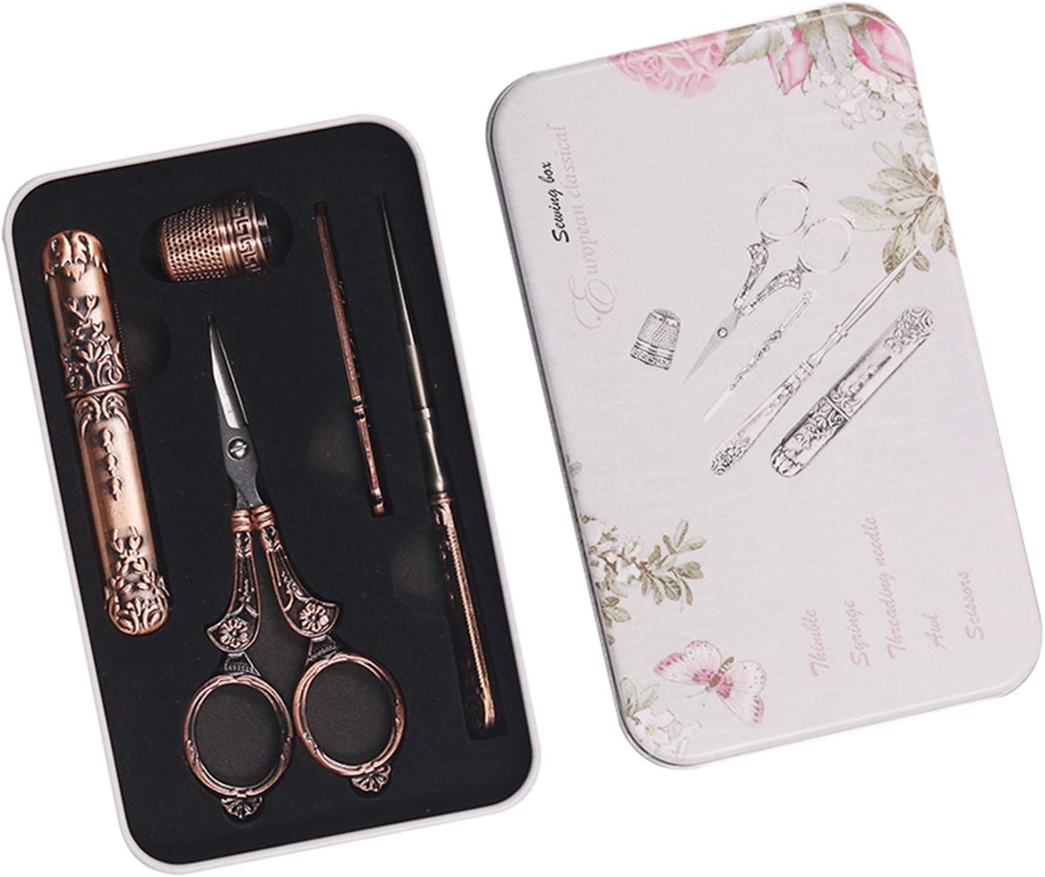 - Vintage sewing set: vintage design, good quality, works well and durable. Great for dressmaking fabric crafts cutting. The scissors have a bright finish, incisive points.A simple, well-made tool that does its job quickly and efficiently.