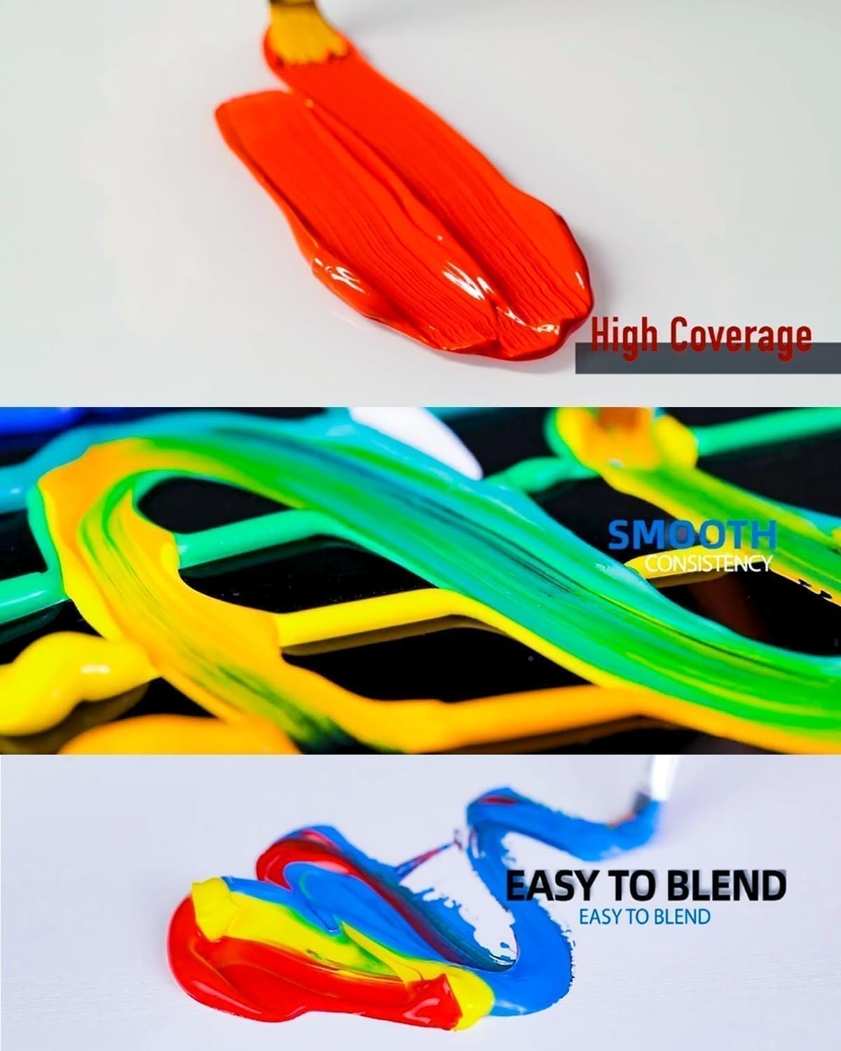 - 🎨PREMUIM QUALITY PAINT- Premium outdoor/indoor use craft acrylic paint glide on smoothly, dry quickly and stay as beautiful as the day they were painted. The creamy consistency and high pigments offer great covering power for large areas and fine details. Those highly pigmented colors are great to produce true, consistent shades on painting art, ideal for professional artists, young aspiring artists, painting lovers . ASTM D-4236 and EN71-3 (CE) certified, non-toxic and safe.