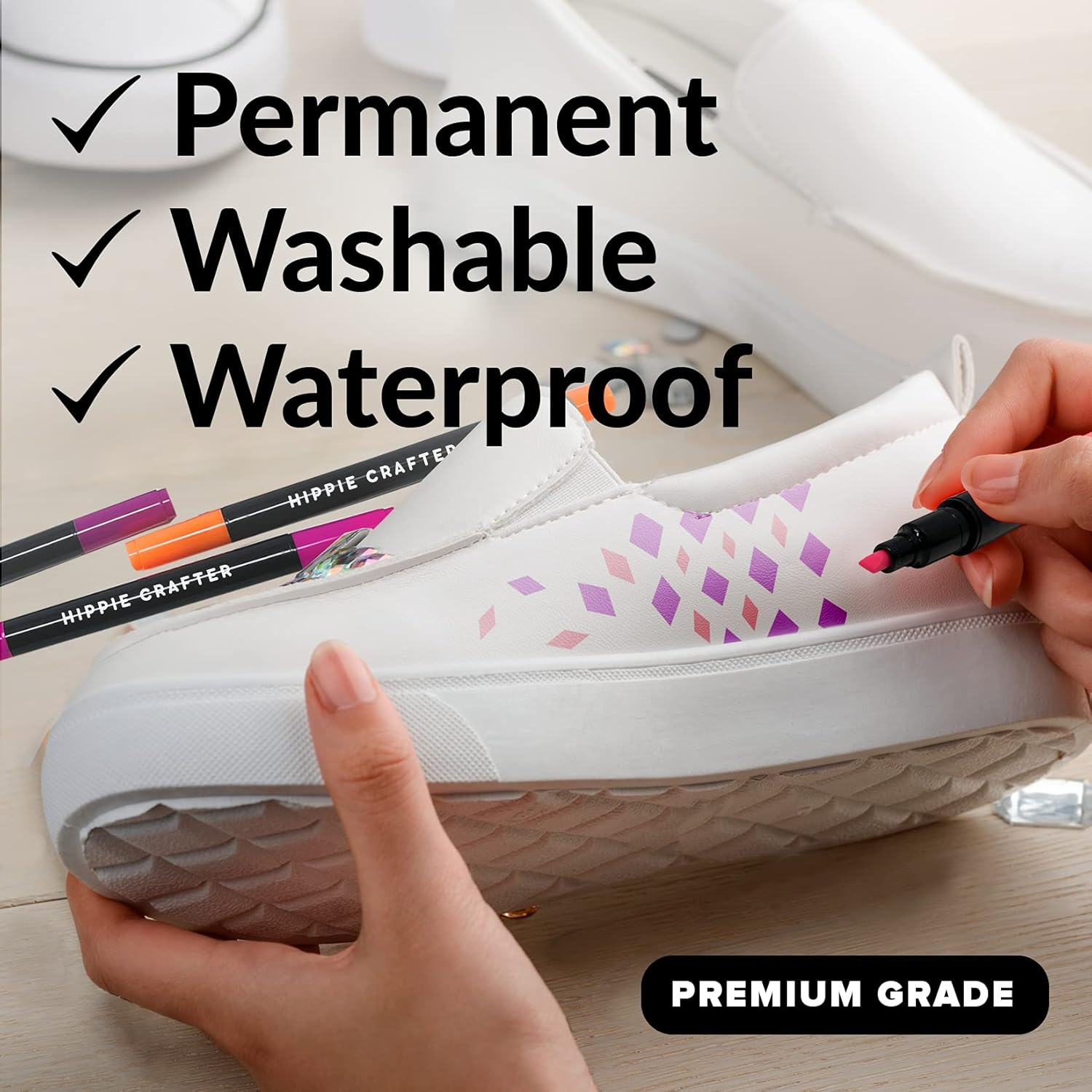 - PERMANENT & WASHABLE: Our fabric markers permanent for clothes are machine washable and remain vibrant after multiple washes. Fabric paint pen pigments are rich and vibrant and ideal for beginners through experts on clothing & crafts.