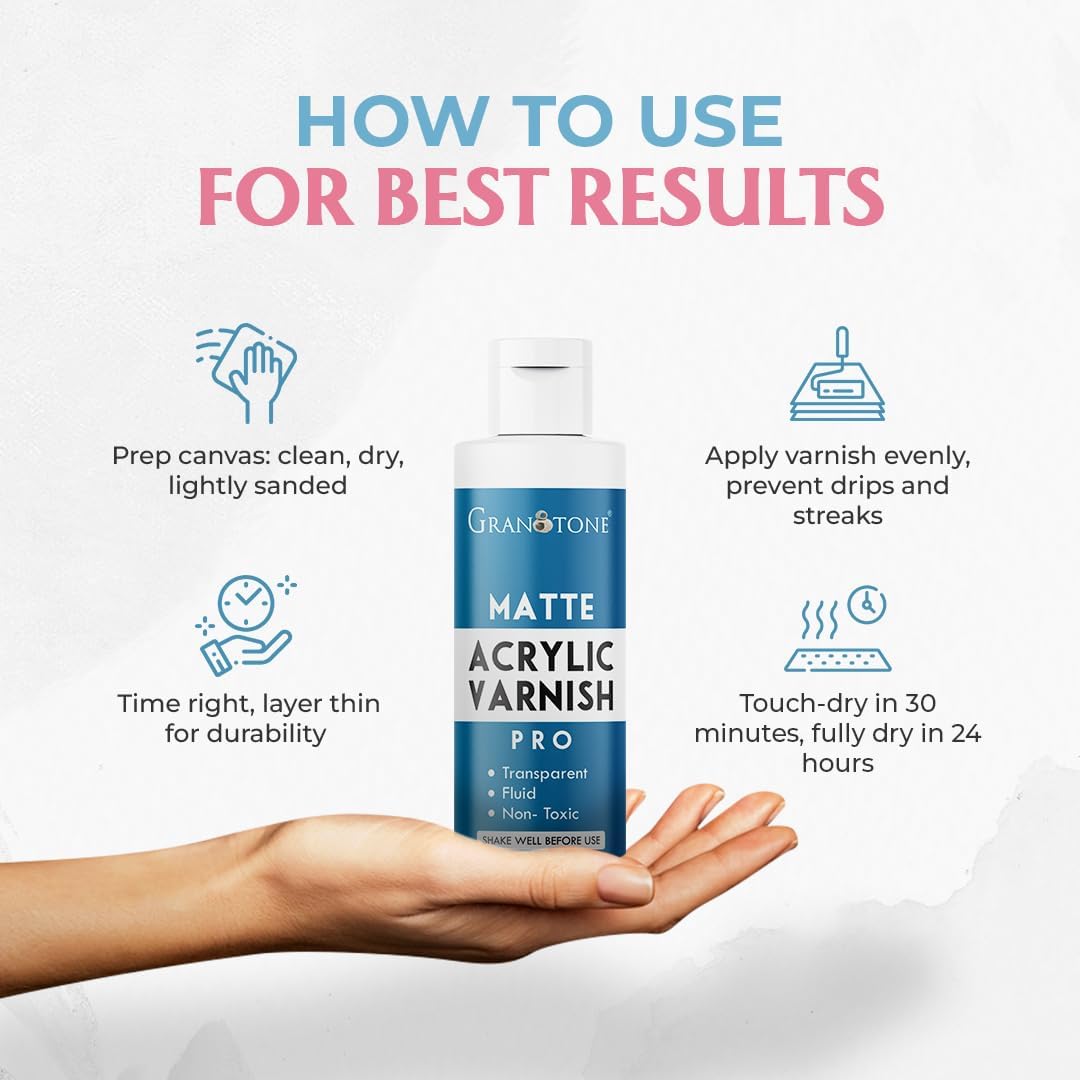 GRANOTONE Acrylic Artist's Varnish | Matte Finish | Non-Yellowing | Non-Toxic | Anti-Crazing Formula | for Pro Artists, Hobby Painters & Kids | Made in India | 100 ML (3.38 fl oz)