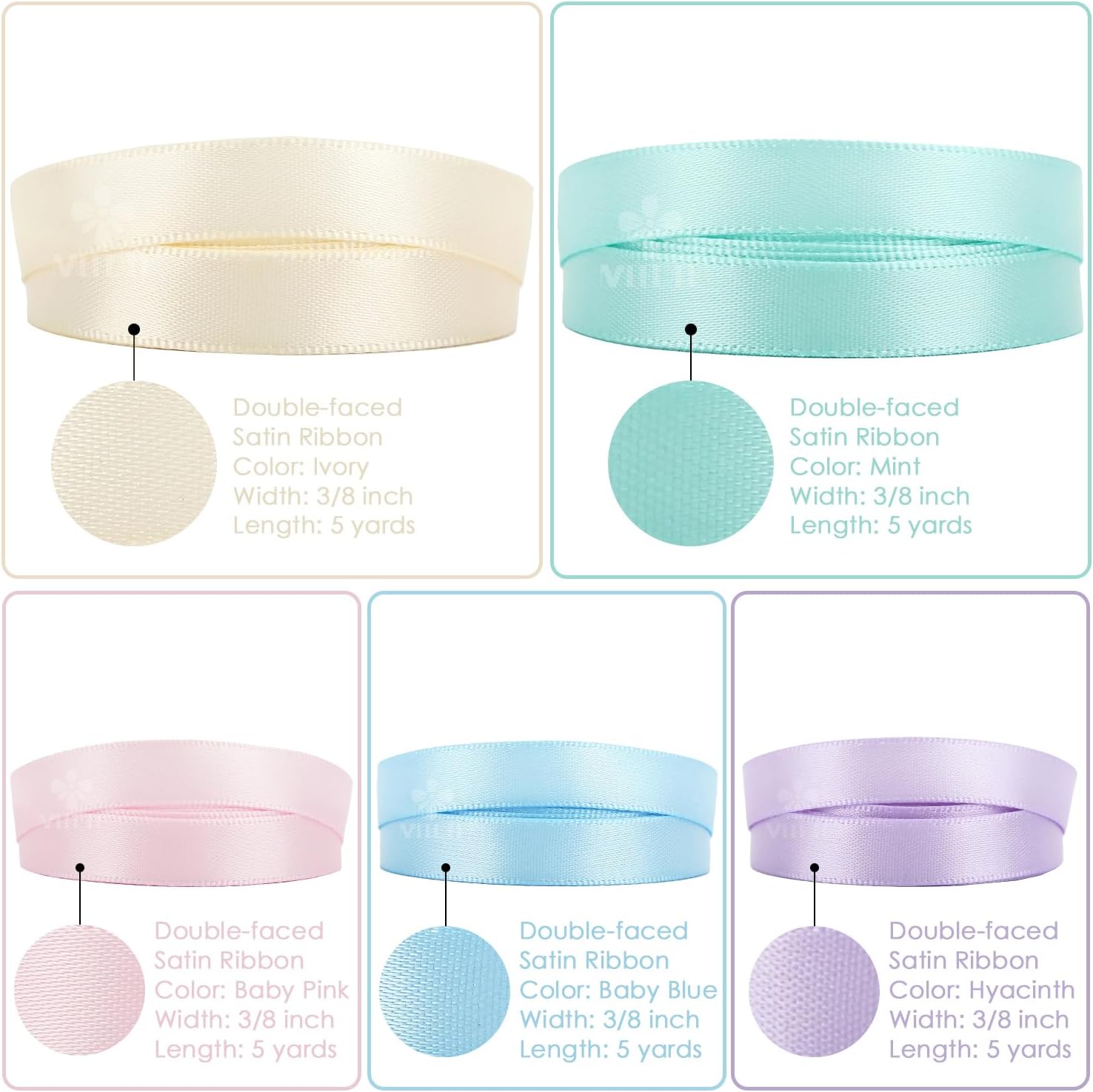 - Pastel Shades: 10 most popular vibrant colors like ivory, pink, lavender, blue, mint, green, yellow, turquoise, orange and rose pink. With this representative classic rainbow theme color, you'll have the enough ribbon for any occasion, unicorn party decoration, wedding events, baby shower, bouquet wraps,or gift wrapping project!
