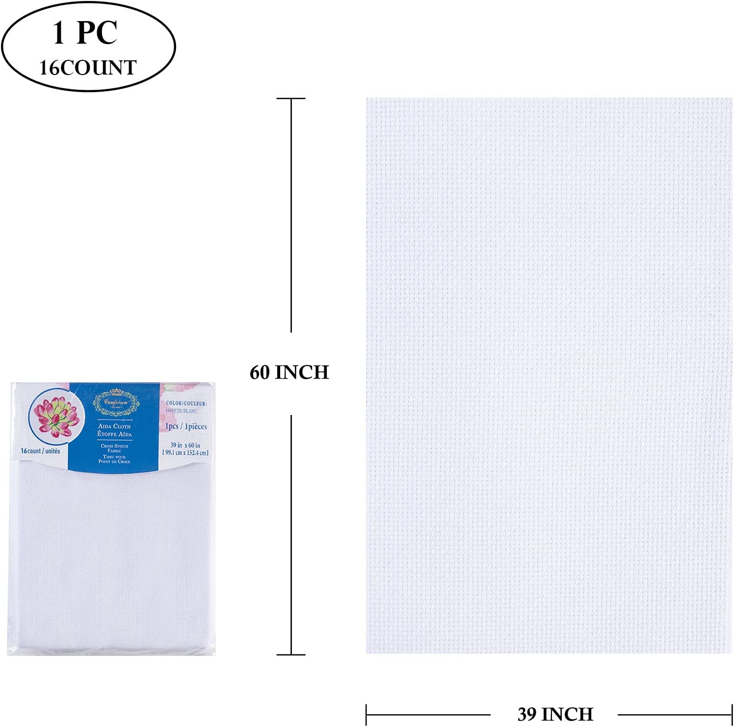 Aida Cloth Big Size 16 Count, White Cross Stitch Fabric, 39 inch by 60 inch