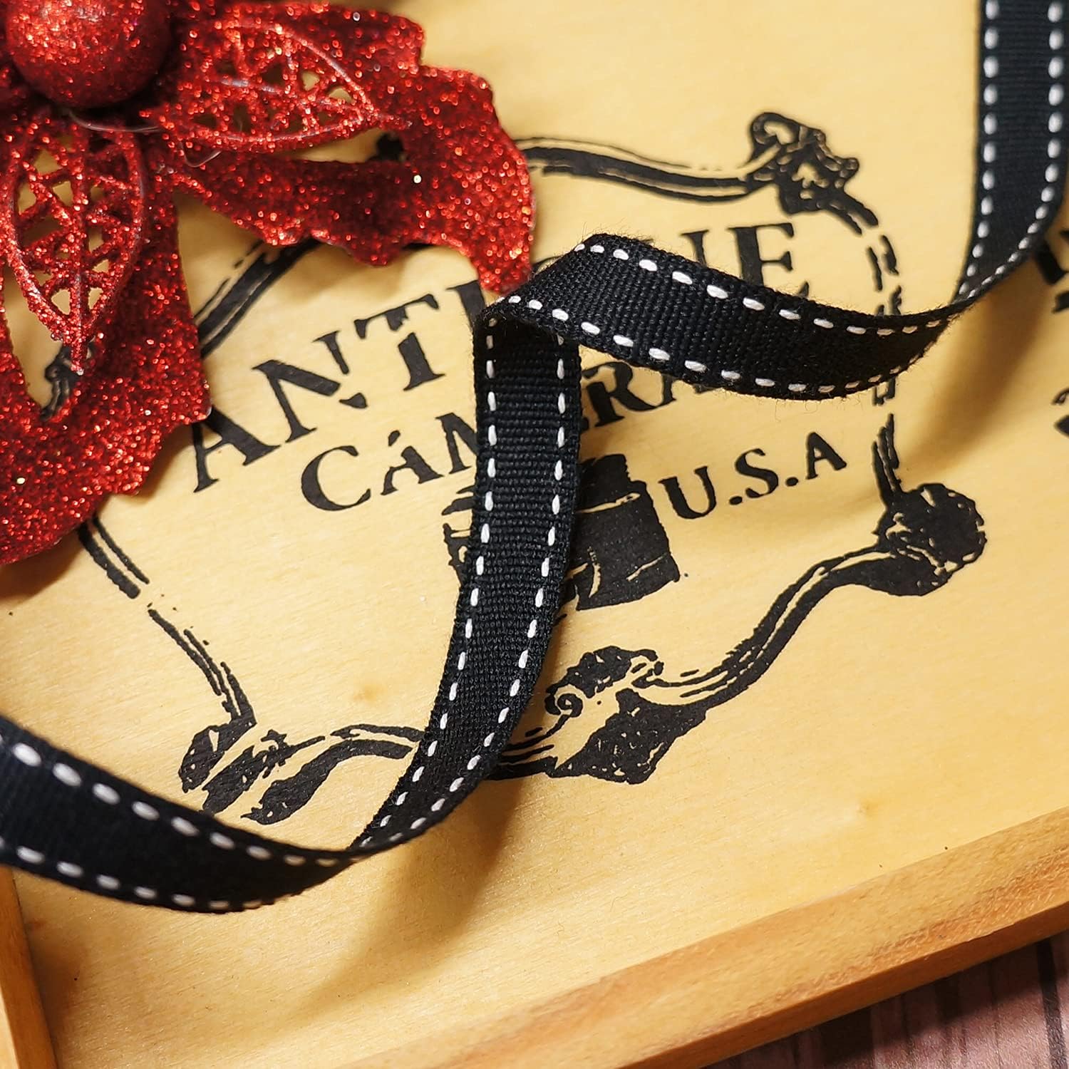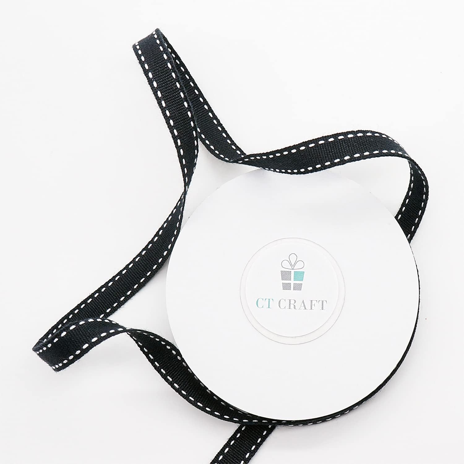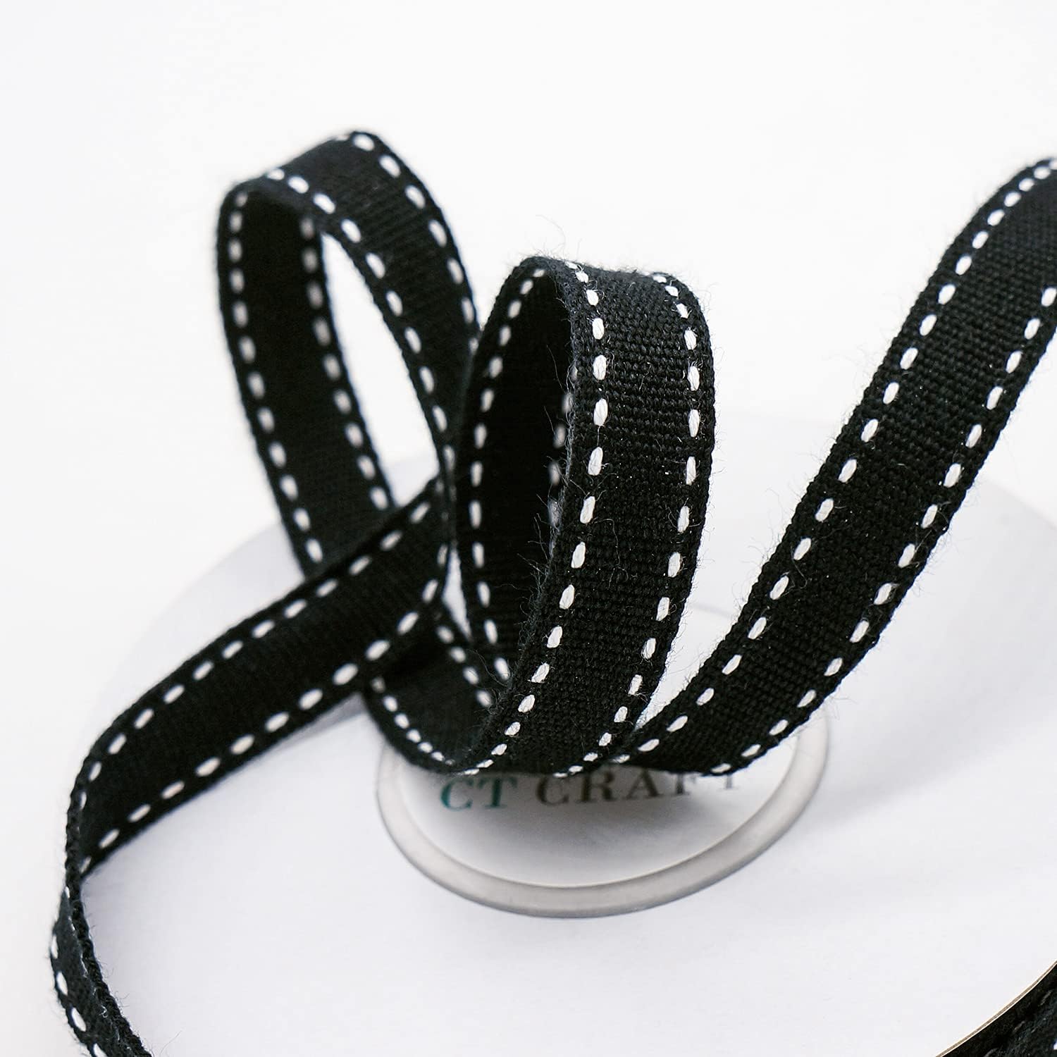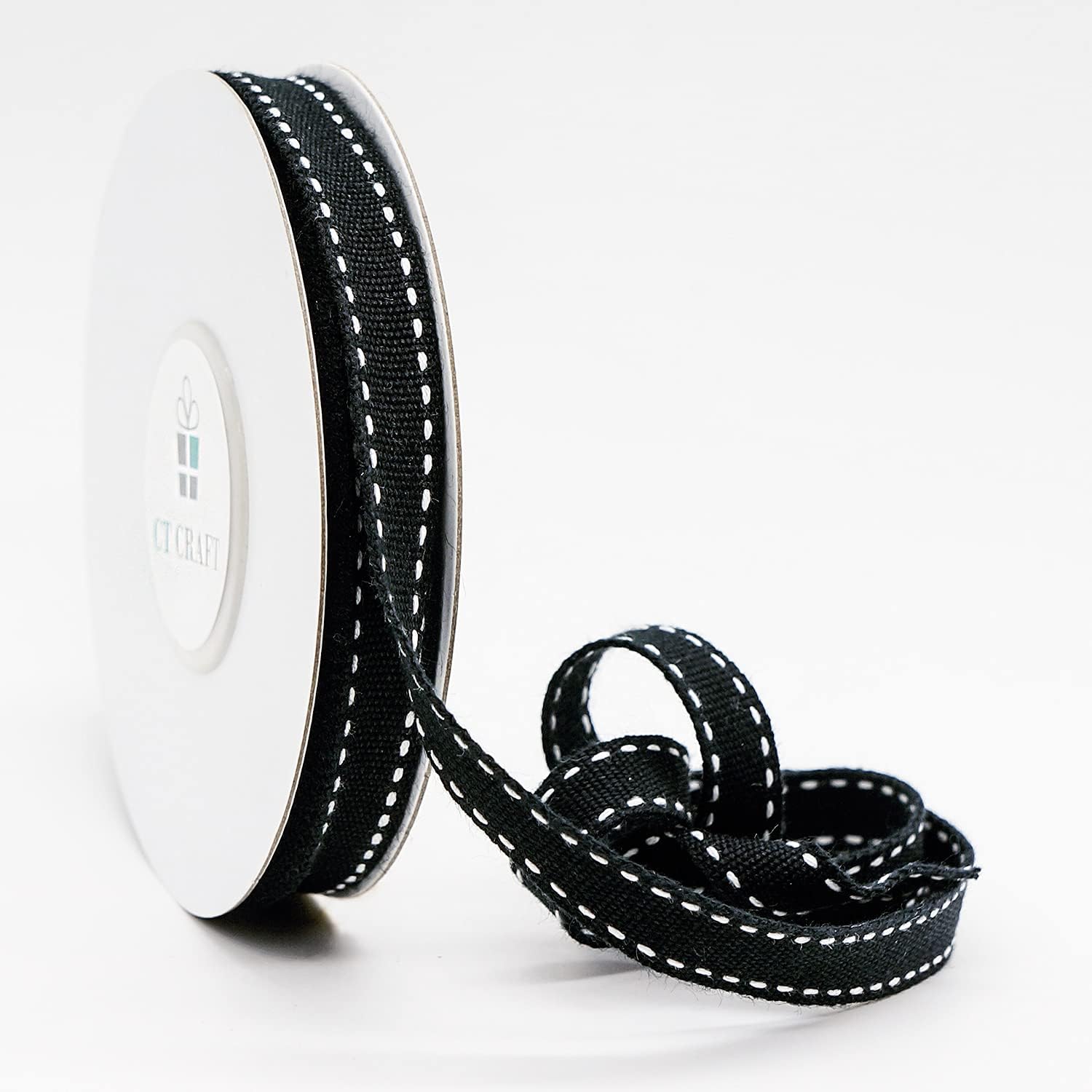 CT CRAFT LLC Black Cotton White Stitched Ribbon 3/8" x 10 Yards for Home Décor Gift Present Wrapping DIY Crafts Birthday Wedding Bouquet Christmas