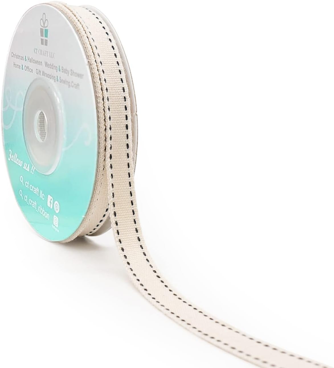 - EASY TO USE - The 10-yard long Ivory Cotton Black Stitched Ribbon 3/8" is enough for all the decorating and accenting your DIY Crafts. The Ivory Cotton Black Stitched Ribbon 3/8" is easy to use and won’t tangle. It can be tied or glued on gift packages and DIY craft projects such as car and chair bow, wreath, flower bouquet.