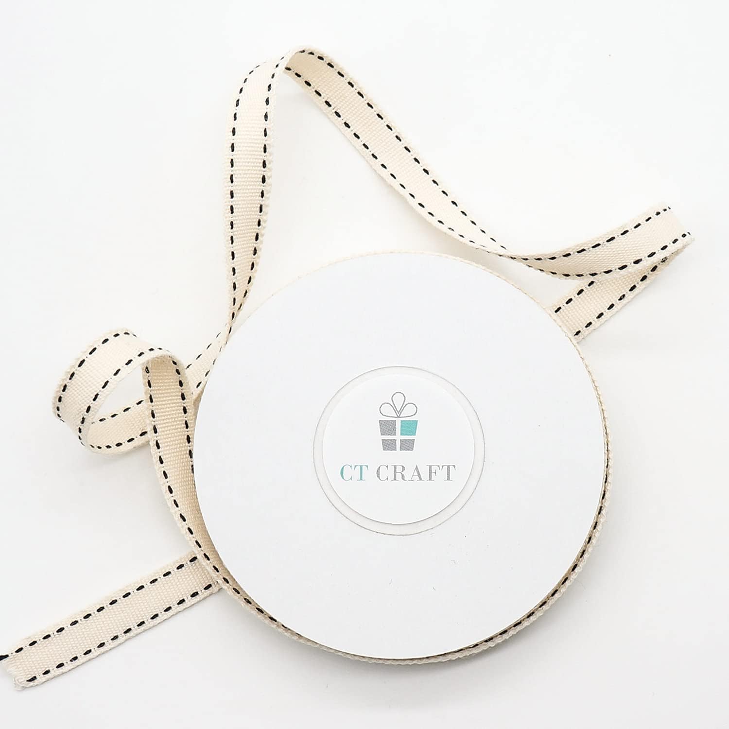 - SIMPLE YET ELEGANT - There is nothing that can accent your Craft better than our Ivory Cotton Black Stitched Ribbon 3/8" for crafts. This ribbon matches any type of gift wrapping paper and the texture not only adds to their premium quality. You'll appreciate the ease and finesse with which these Ivory Cotton Black Stitched Ribbon 3/8" glide through your fingers.
