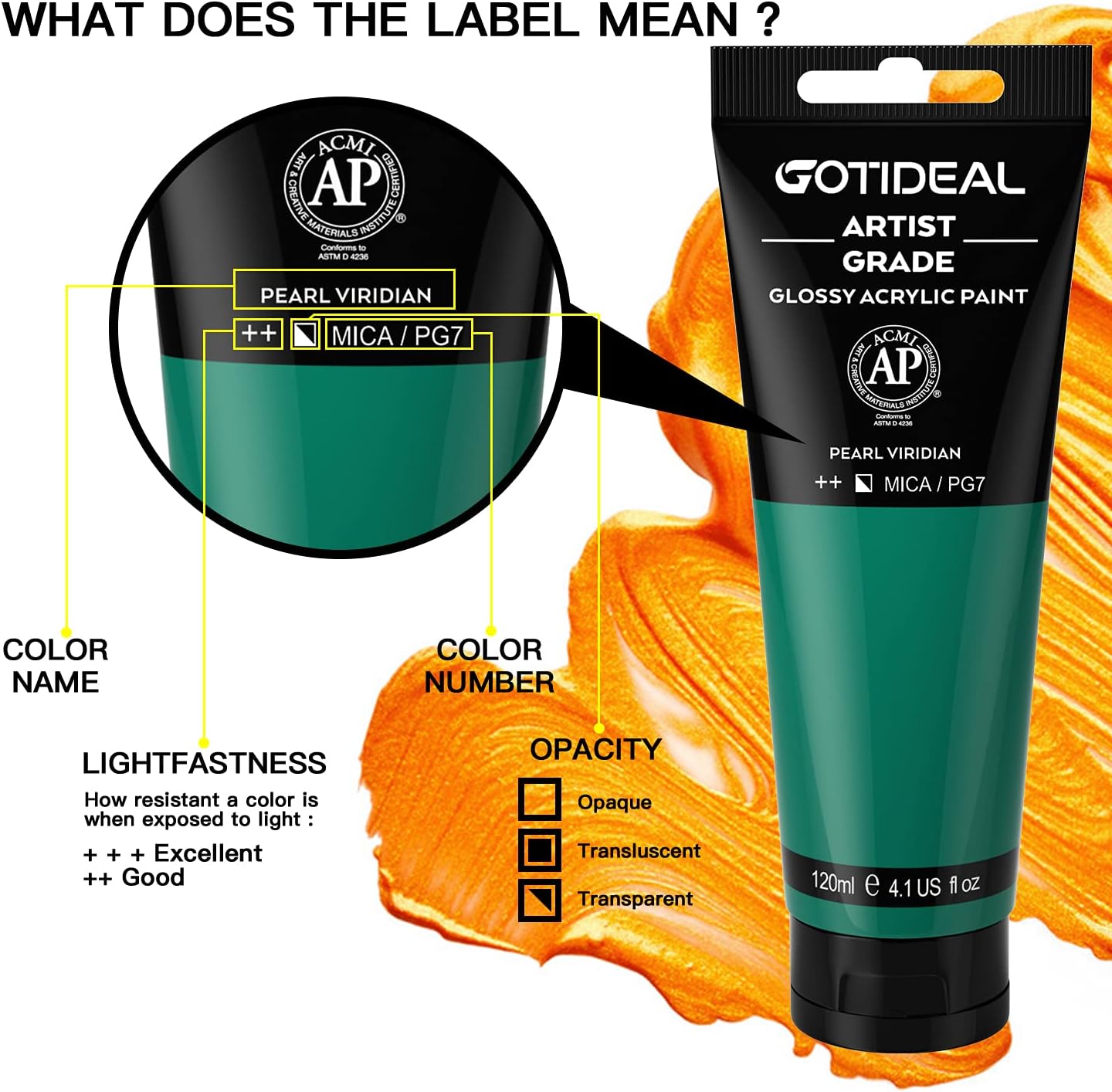 GOTIDEAL Metallic Acrylic Paint Pearl Viridian Green Tubes(120ml, 4.1 oz) Non Toxic Non Fading,Rich Pigments for Painters, Adults & Kids, Ideal for Canvas Wood Clay Fabric Ceramic Craft Supplies