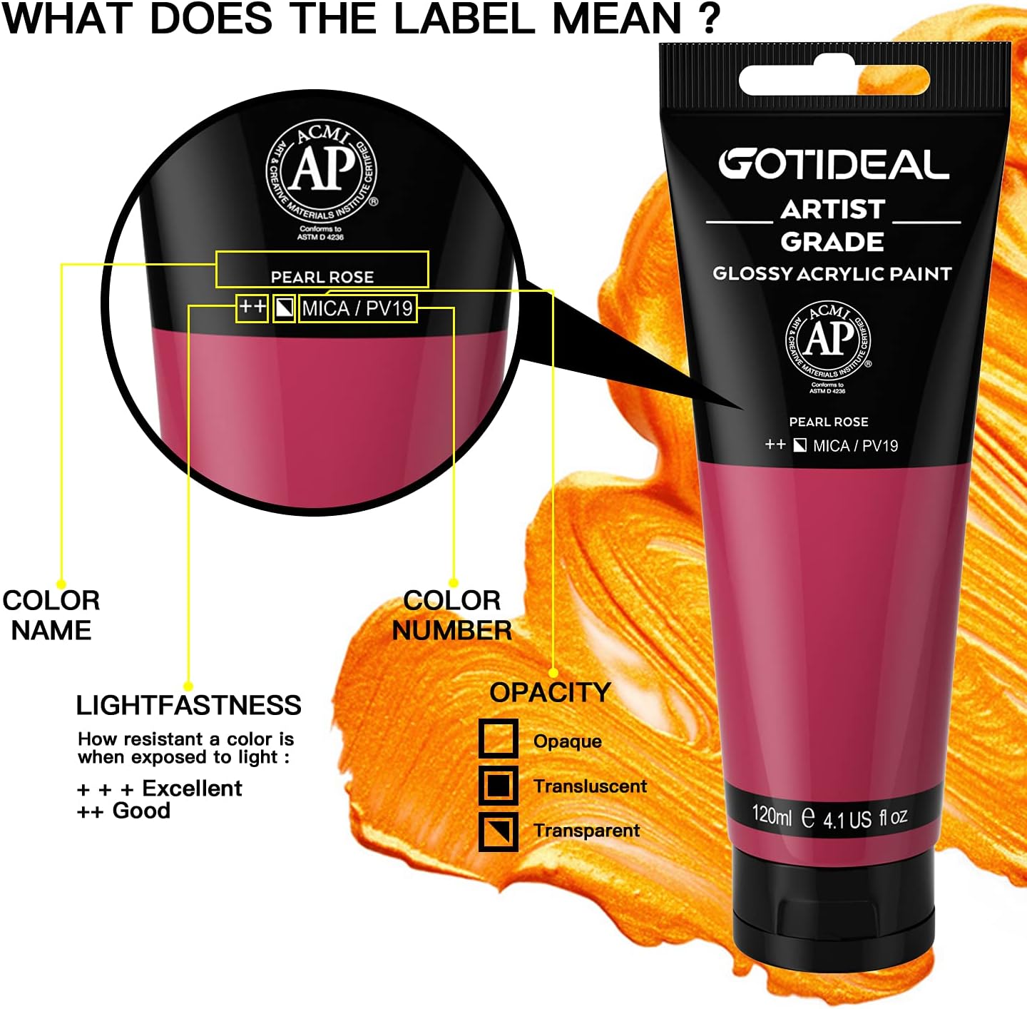 GOTIDEAL Metallic Acrylic Paint Pearl Rose Red Tubes(120ml, 4.1 oz) Non Toxic Non Fading,Rich Pigments for Painters, Adults & Kids, Ideal for Canvas Wood Clay Fabric Ceramic Craft Supplies (Pearl