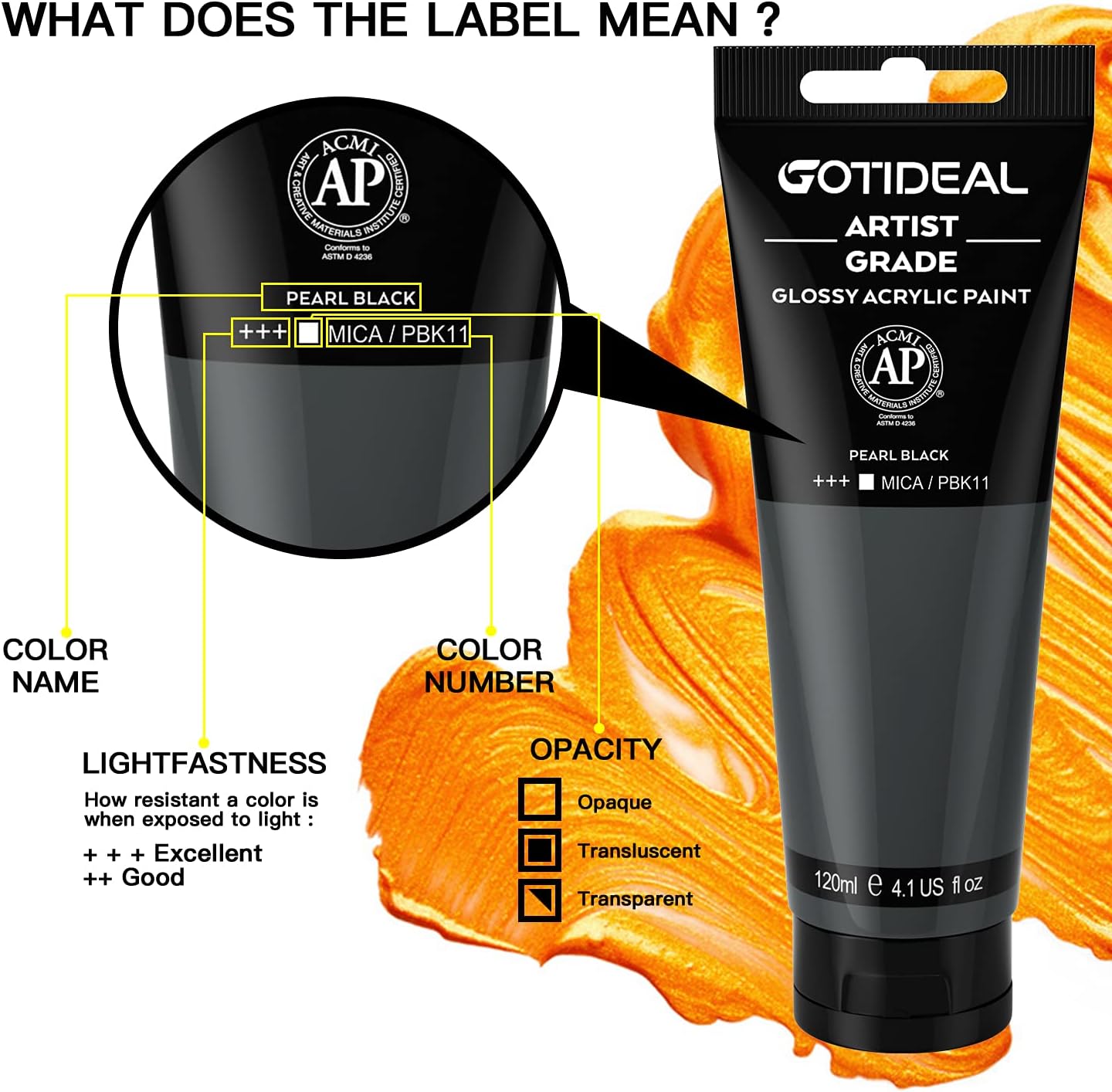 GOTIDEAL Metallic Acrylic Paint Pearl Black Tubes(120ml, 4.1 oz) Non Toxic Non Fading,Rich Pigments for Painters, Adults & Kids, Ideal for Canvas Wood Clay Fabric Ceramic Craft Supplies (Pearl Black)