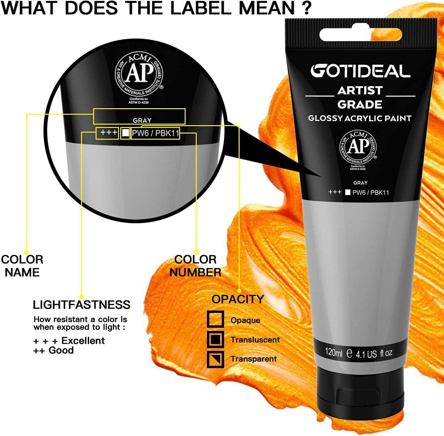 - INDDIVIDUALLY LABLED: Each tube is labeled with pigment information including: opacity level, shade's lightfastness rating, color name/number