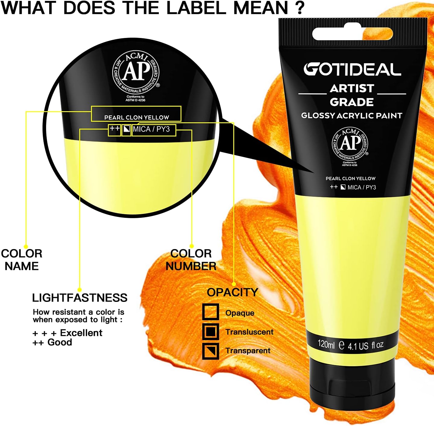 GOTIDEAL Metallic Acrylic Paint Pearl Clon Yellow Tubes(120ml, 4.1 oz) Non Toxic Non Fading,Rich Pigments for Painters, Adults & Kids, Ideal for Canvas Wood Clay Fabric Ceramic Craft Supplies