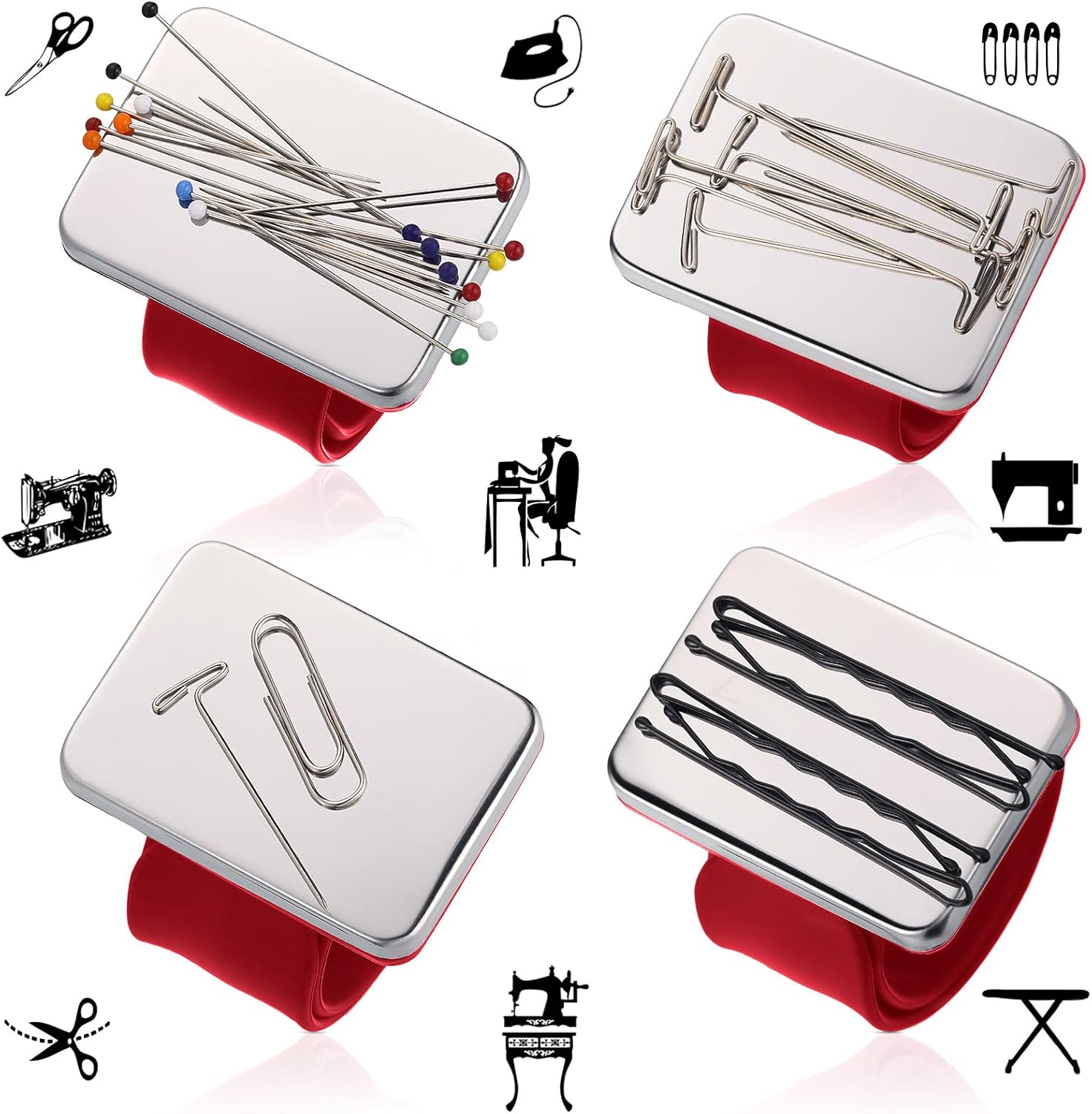 - Magnetic design: equipped with magnetic design, stainless steel pins can be directly absorbed by the wristband pin holder, which is convenient for your sewing projects, when you want to use numbers of needles, you don't need to collect one by one, just take out the magnetic pin holder to attract needles, helping you do sewing activities quickly