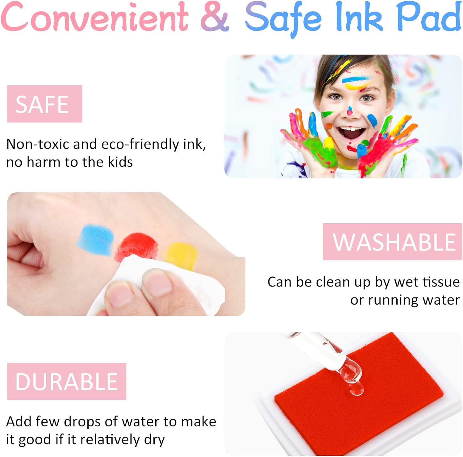 - π¨ Water-Based, Safe & Clean Ink: The inks are water-based, non-toxic, and environmentally friendly, offering light consistency with fresh, subtle colors. Safe for kidsβ hands and easy to wash off after use, making them perfect for worry-free crafting.