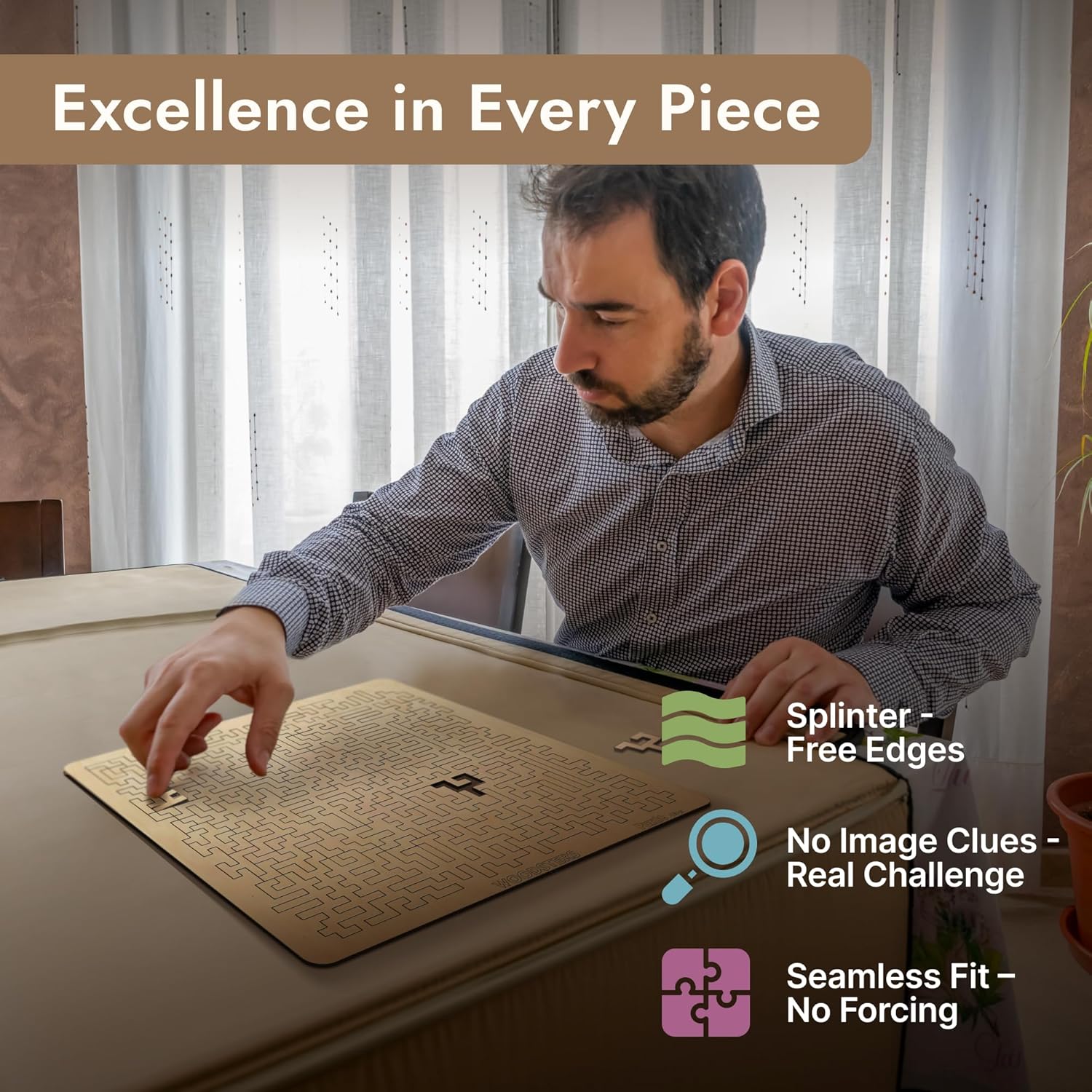 Mind Bending Wooden Jigsaw Puzzle - Difficult Challenging Impossible Puzzles for Adults, Advanced Hard Jigsaw Puzzles - Aztec Labyrinth - 130 Pieces