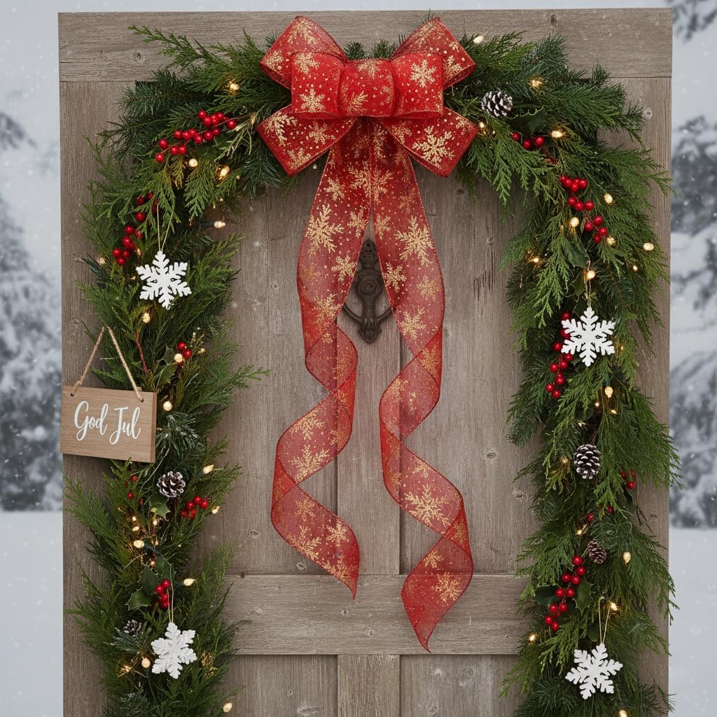 - A MUST-HAVE FOR DECORATION - Don't miss it if you're choosing a Organza with Red Glitter Snowflakes Wired Ribbon 2.5" for your decoration! Our ribbon works perfectly for decorating and adding finishing touch to your craft projects. Simple and elegant.