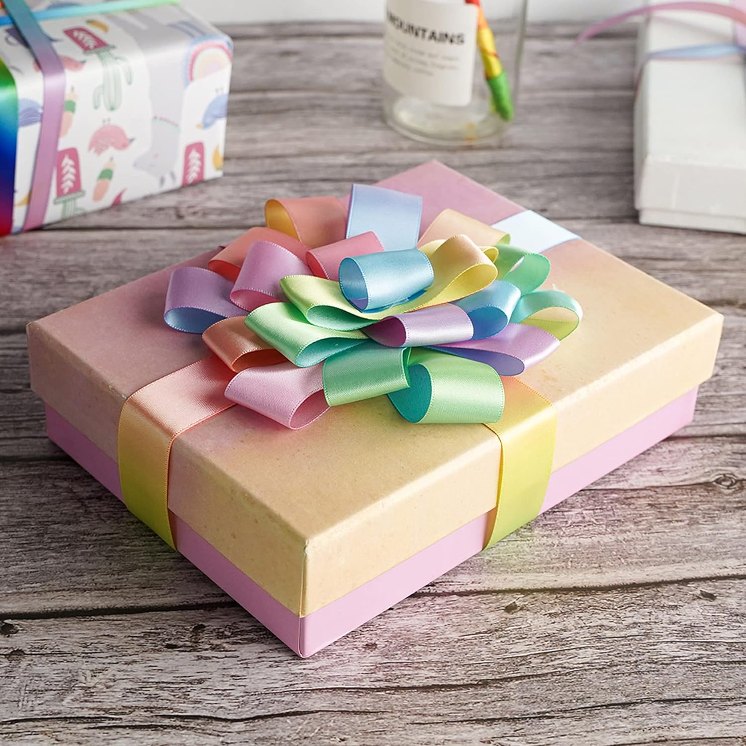 MEEDEE Pastel Rainbow Ribbon - Satin, 1 inch, 25 Yards - Perfect for Gift Wrapping, Wedding, Pride, Party & Birthday Decorations