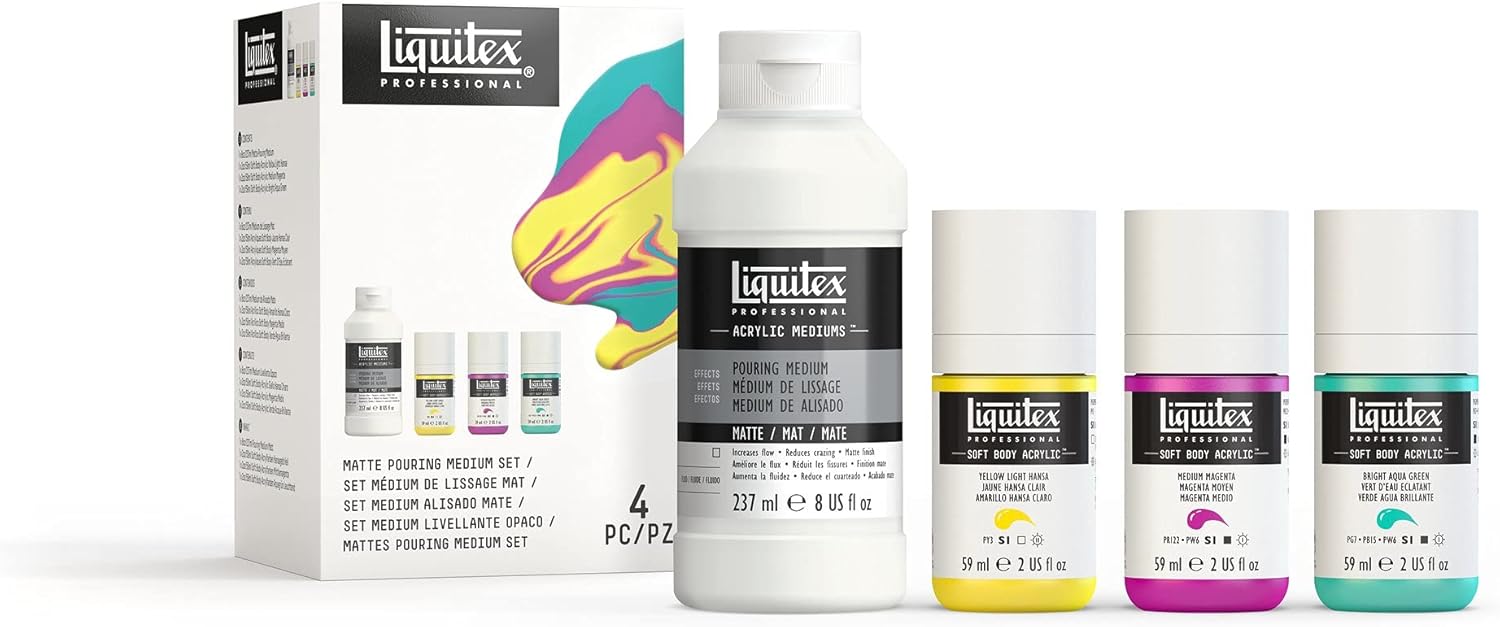Liquitex Professional Matte Pouring Medium Set, Includes 3 x 2-oz Soft Body Acrylic Paint Bottles