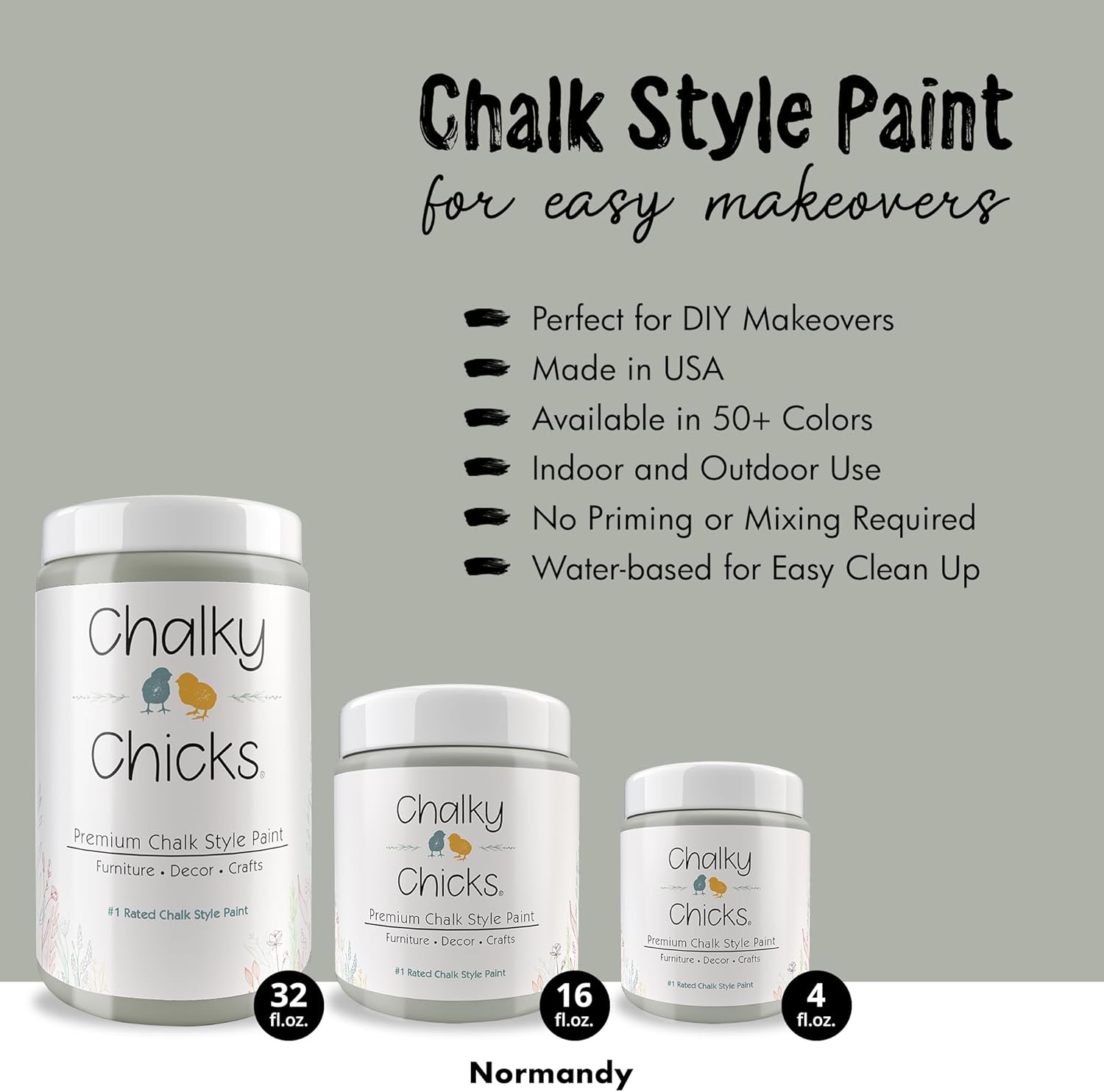 Chalky Chicks All-in-One Chalk Paint for Furniture or Cabinet - 32 Fl Oz - Matte Finish Normandy (Light Gray) for Metal, Wood Furniture Paint - No Sanding All-in-One for Home Decor & Crafts, USA Made
