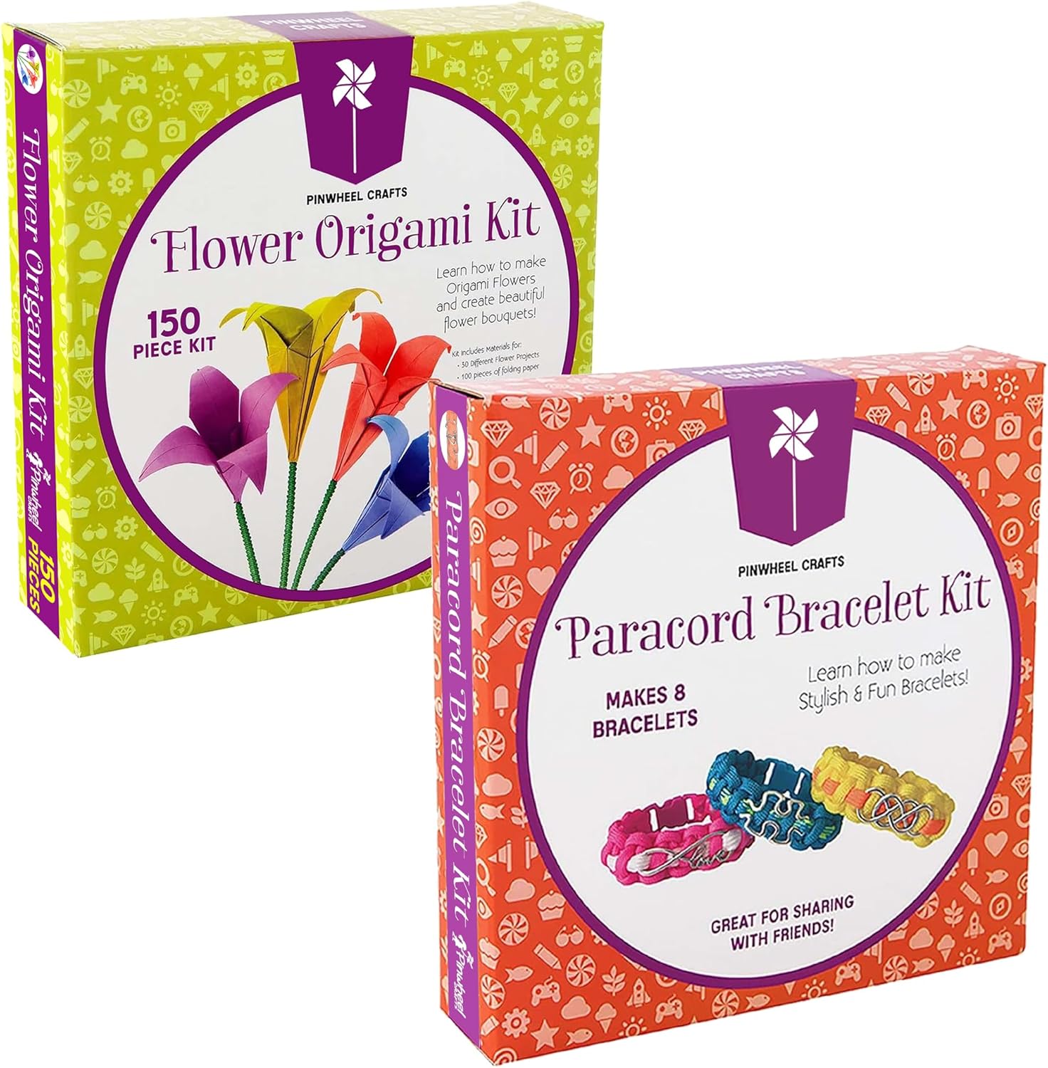 Flower Origami Kit & Paracord Bracelet Kit Bundle - Fun DIY Arts and Crafts Project for Kids Ages 6 7 8 9 10 11 12 - Great Gifts for All Occasions