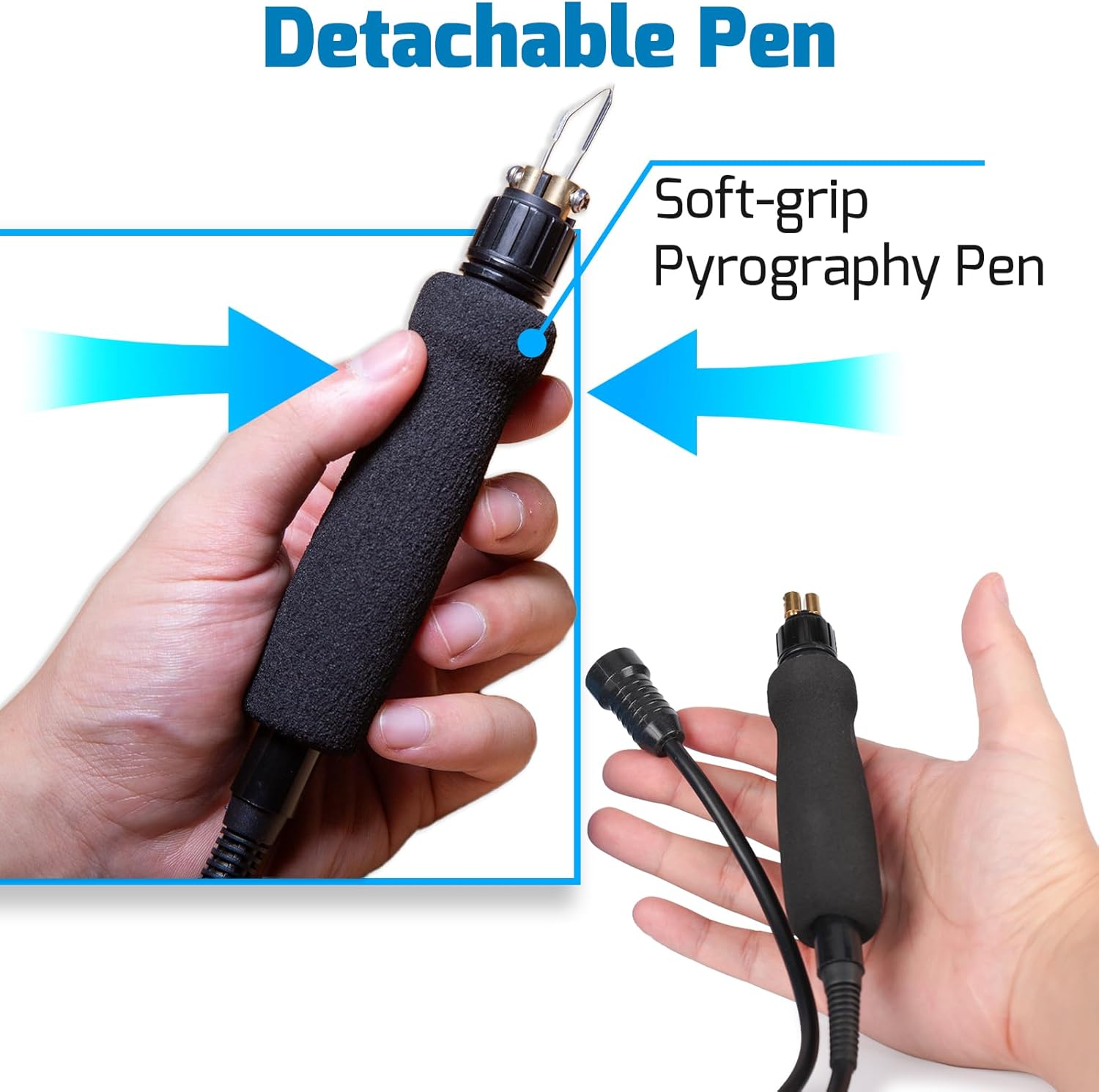 - You can change the woodburning pen’s tips easily, and the pen can be detached from the station. This station delivers heating power via a quality transformer, and the pen’s receptacle are safe to install the handle . The woodburning pen tips (nibs) are made thinner and more flexible, paired with the soft pen handle grip to provide better drawing feel and feedback when wood burning
