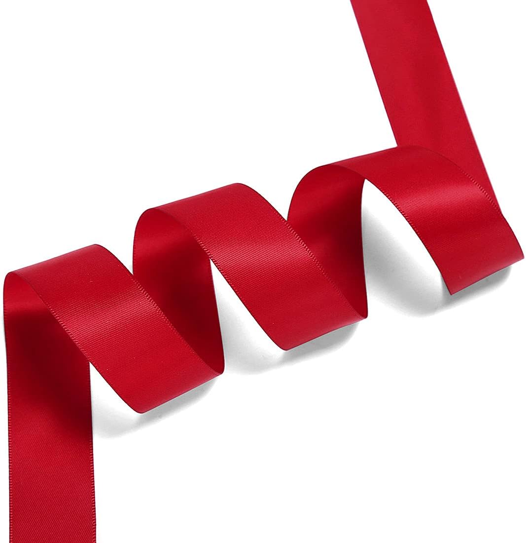 Satin Ribbon 1 Inch Red Double Faced - 25 Yards for Gift Wrapping DIY Bows Crafts Bridal Bouquet Cutting Ceremony Sewing Christmas Wedding Baby Shower Decoration Humphrey's Craft