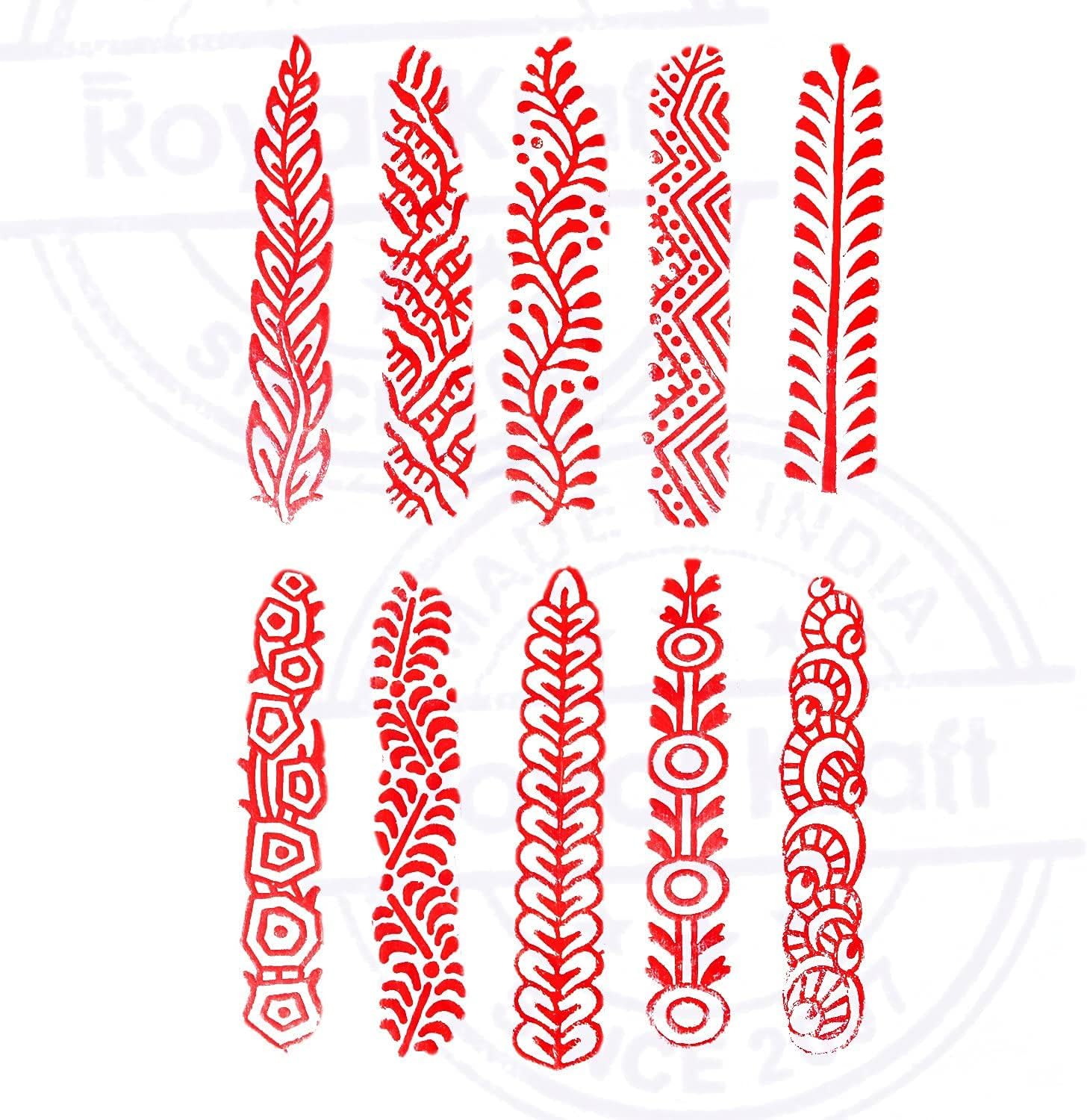 AnNafi® Mehendi Print Blocks| Border Pattern Wooden Stamps (Set of 10)| Fabric Wooden Stamps Border Pattern Printing Blocks| Designer Craft for Mehandi Textile Pottery Saree Border Canvas Painting |