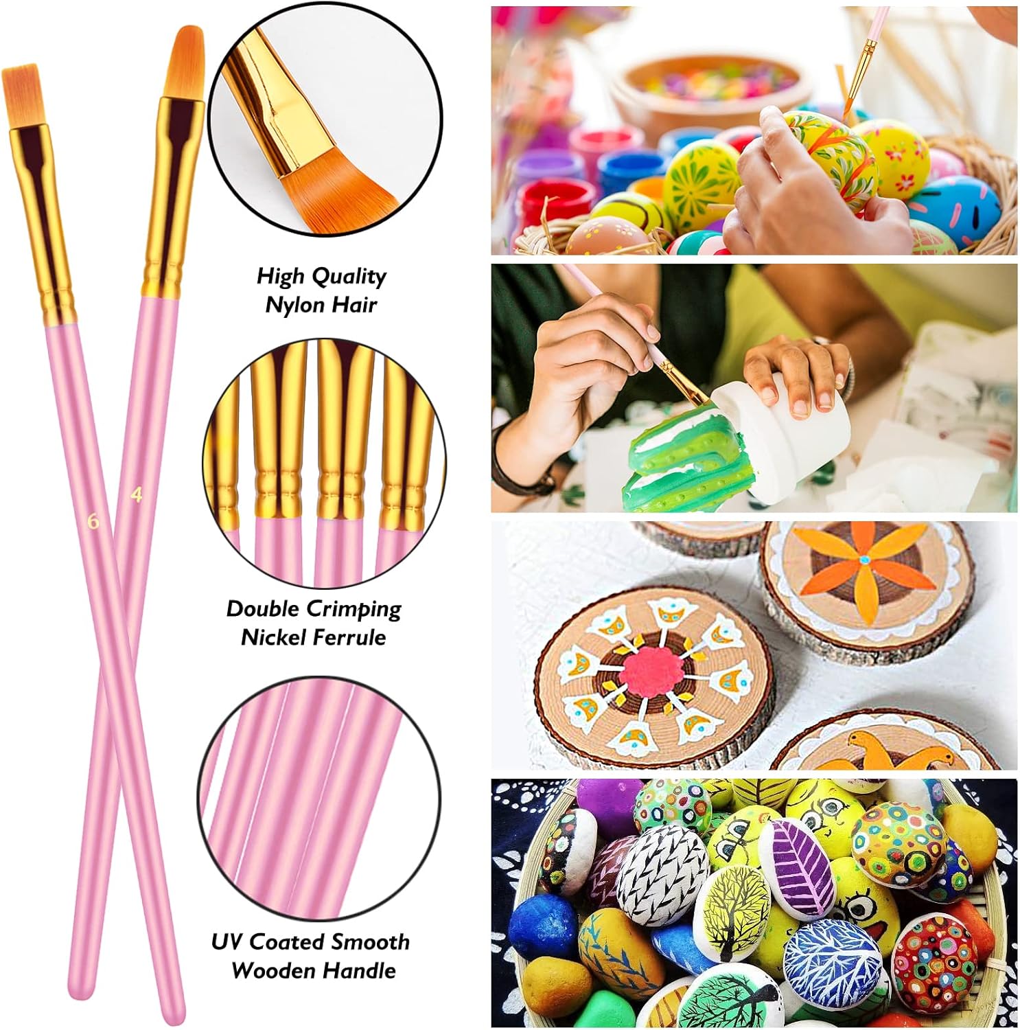 - Multi-purpose Painting Brushes: Assorted Sizes & Shapes of Paint Bush Bulk Perfect for Art Painting, Which Can Cover all Your Needs. Works Well with Art, Watercolor, Oil, Canvas, Gouache, Rocks, Vinyl, Acrylic Painting, Body, Nail, Face Painting, Fabric, Egg, Miniature, Model, Wood, Glass, Cup, Ceramic, Fine Work, Art Class, Craft Art Painting, DIY Art Crafts etc. Acrylic Paint Brushes Allow You to do Fine Detail Painting Precisely to Reach Tight, Small Spots or Tiny Points.