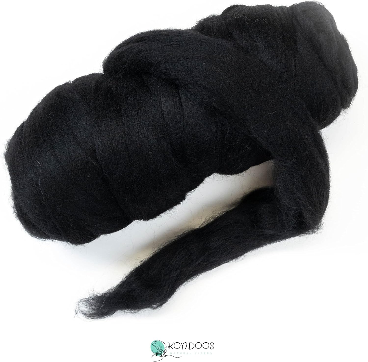 Colored Natural Wool roving, 1 lb. Best Wool for Needle Felting, Wet Felting, handcrafts and Spinning. (Total Black, 1 lb)