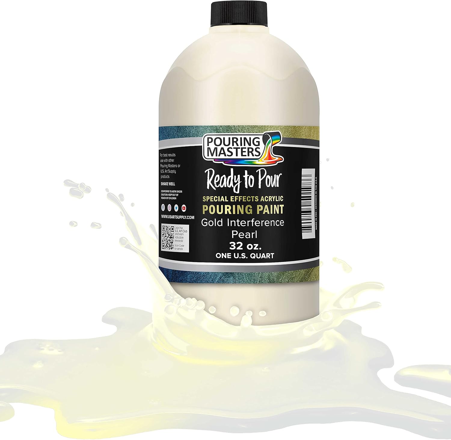 Pouring Masters Gold Interference Pearl Special Effects Acrylic Pouring Paint - Premium 32-Ounce Pre-Mixed Fluid Acrylic Paint - Fluid Art Supplies for Canvas, Wood, Paper, Tile & Rocks