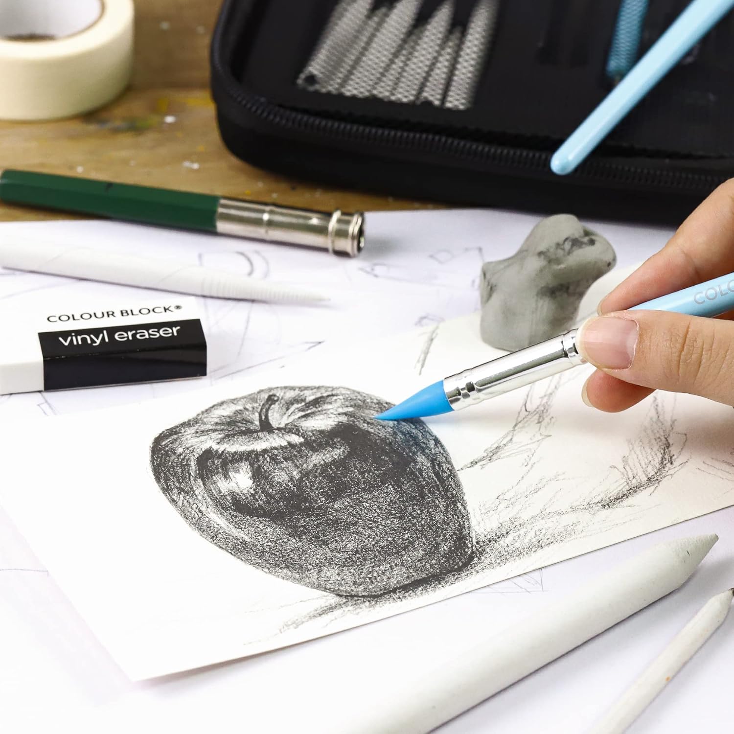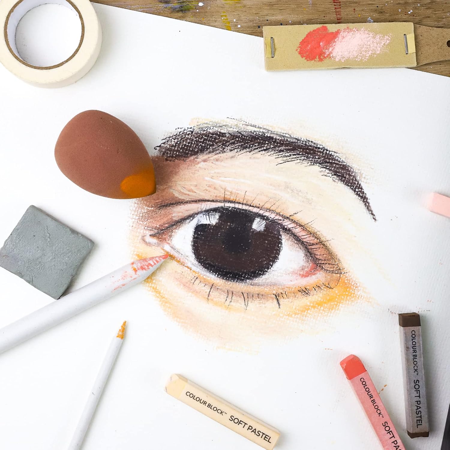 COLOUR BLOCK 30pcs Sketching Tool Set with Soft Pastels Drawing Art Blenders, Blending Stumps, Tortillions, Sandpaper, Sketch Pencil Extender, Rubber Pens