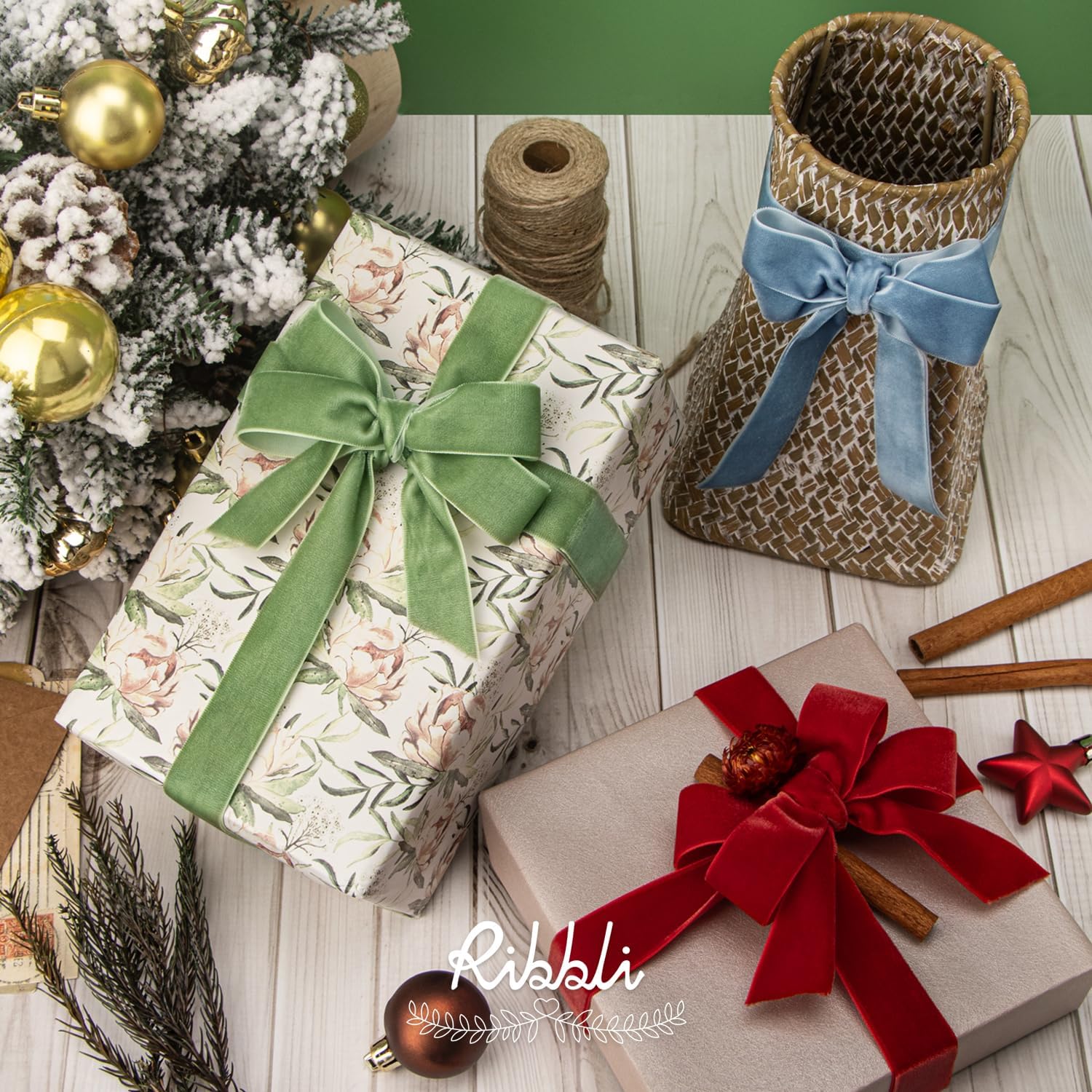 Ribbli Polyester Red Velvet Ribbon,5/8 Inches Continuous10-Yard Spool,Christmas Ribbon for Gift Wrapping,Floral Bouquets, Home Decor