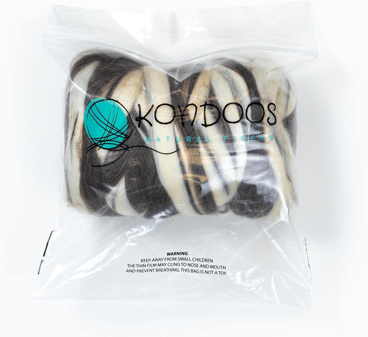 Kondoos Natural Wool roving, 8 OZ. Best for Needle Felting, handcrafts and Spinning. Natural Colours, un-Dyed. (Brown Zebra(Ecru/Mocha), 8 oz)