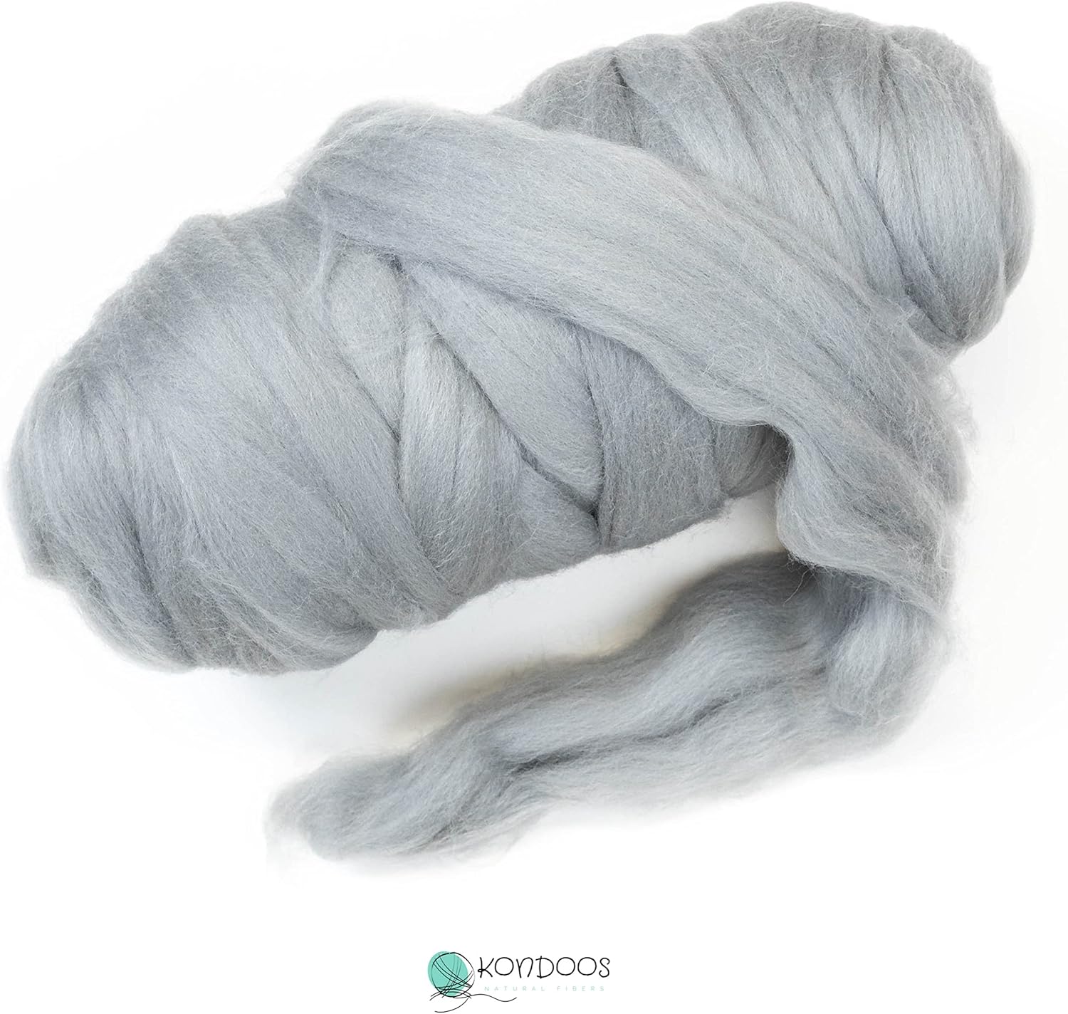 Kondoos Colored Natural Wool roving, 1 lb. Best Wool for Needle Felting, Wet Felting, handcrafts and Spinning. (Silver, 1 lb)
