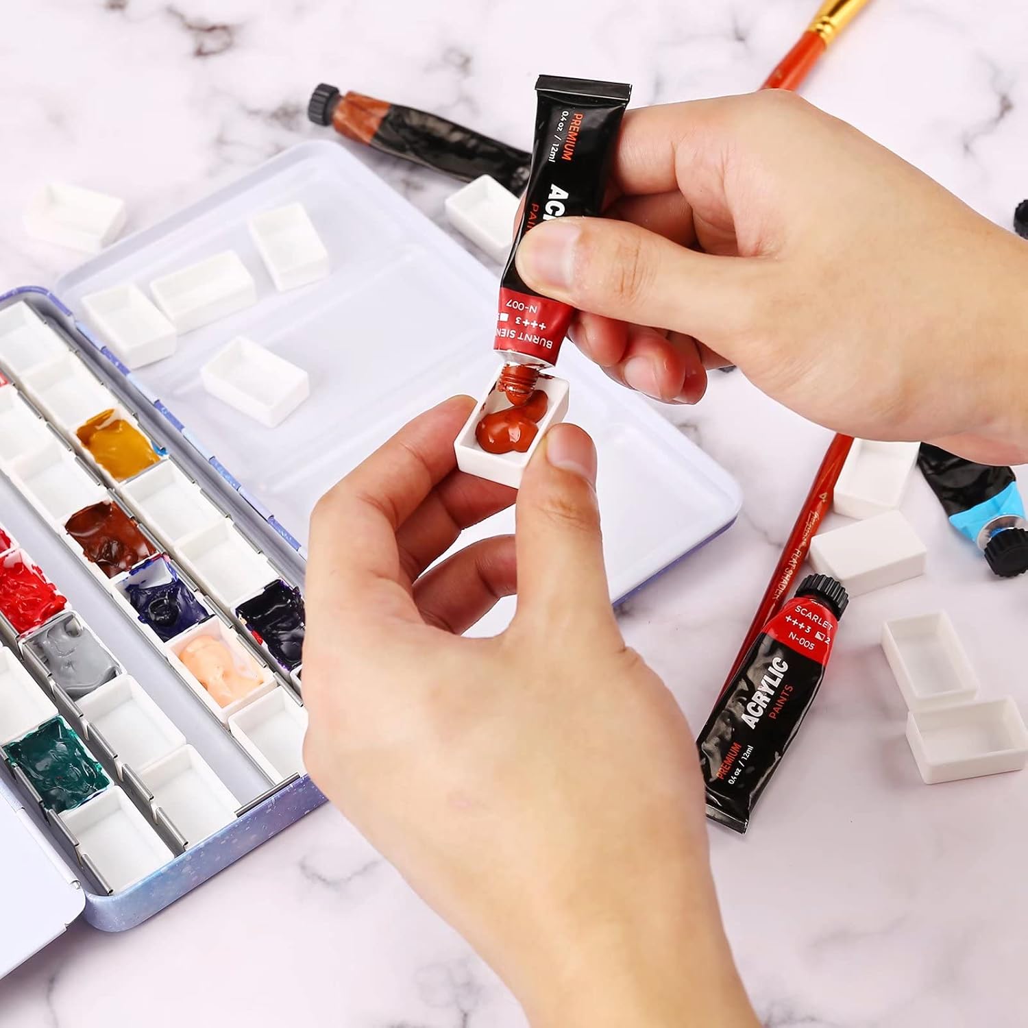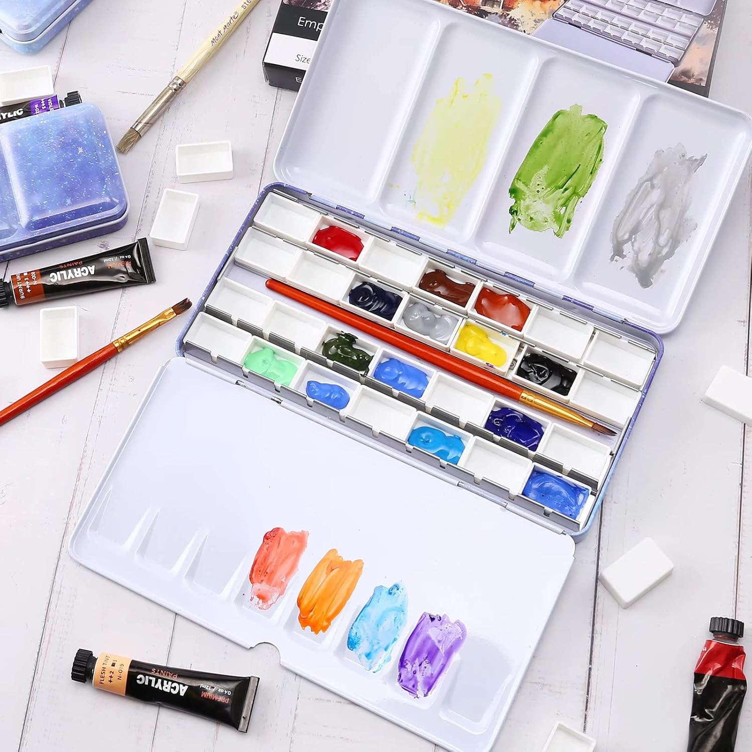 - 【BUILDING A CUSTOM WATERCOLOR PALETTE】Simply fill the pans with your favorite tube watercolors, let them dry, and then re-wet them when you're ready to paint. Use colors straight from the tube or mix up your own custom shades and store them for later use.