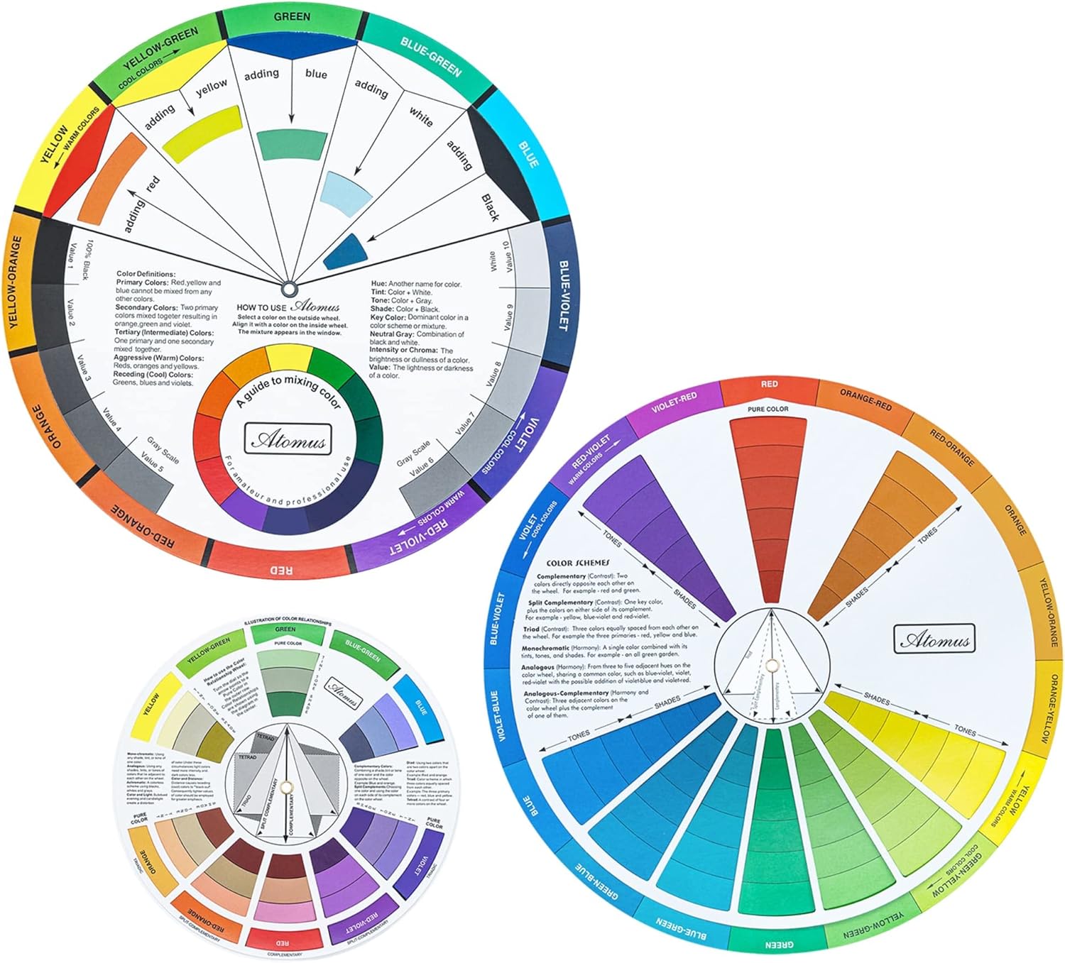 - Package Include:3 * color wheels (different sizes). The artist wheel helps show which colors are complimentary, and how they go (or don't go) together, great for learning how to color