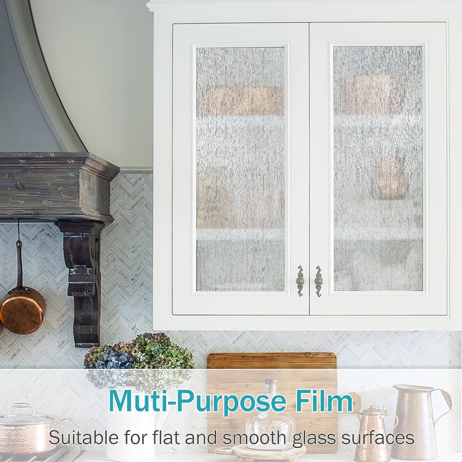 - RAIN GLASS SIMULATION - An excellent way to upgrade normal glass into rain glass look at a fraction of the cost. Not only does the rain glass film add an attractive design for an updated look but it also offers some degree of privacy.