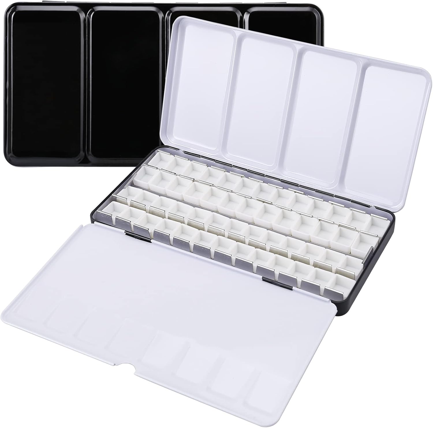 - 【INCLUDE 52 EMPTY WATERCOLOR HALF PANS】Includes 52 empty half pans which are detachable, hold up to 1.8ml of watercolor paint. Each watercolor pan is removable and can be refilled with your color of choice. Empty watercolor pans are perfect for organizing your palette.