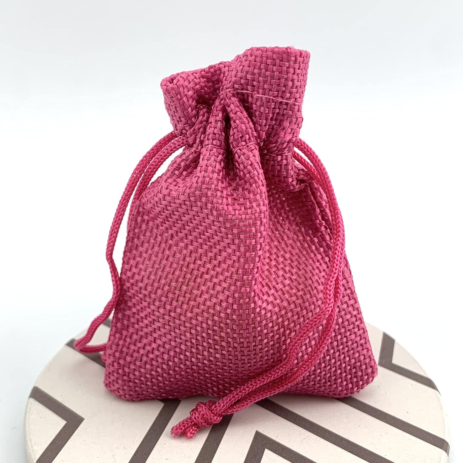 - Palmhomee Pack of 25 Burlap Gift Bags with Drawstring Linen Jewelry Pouches Wedding Hessian Jute Bags for Birthday Jewelry and Treat Pouches Party Wedding Favors Gift Art and DIY Craft (2.8x3.6 Inch, Fuchsia)