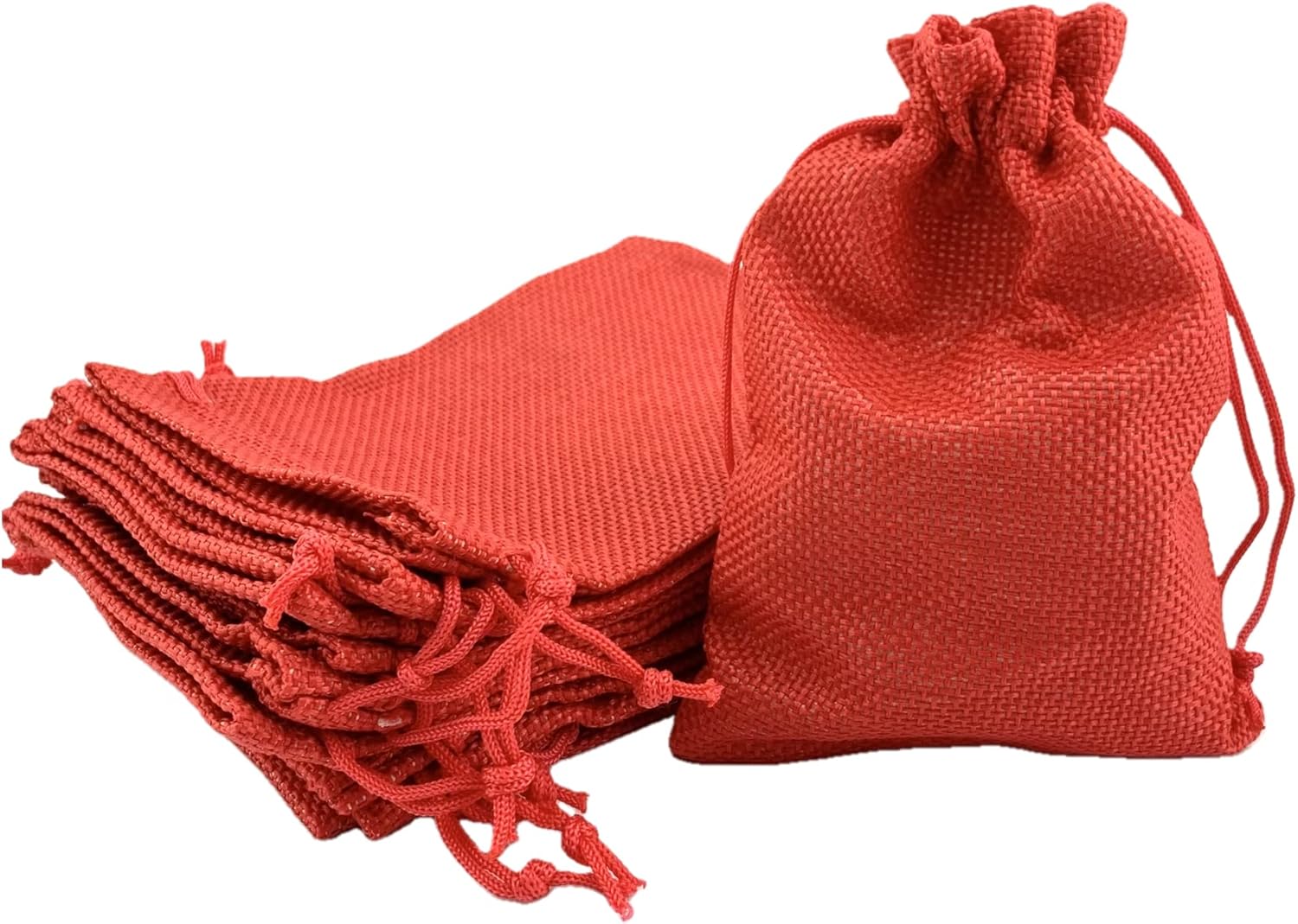 - Palmhomee Pack of 25 Burlap Gift Bags with Drawstring Linen Jewelry Pouches Wedding Hessian Jute Bags for Birthday Jewelry and Treat Pouches Party Wedding Favors Gift Art and DIY Craft (4x5.6 Inch, Red)
